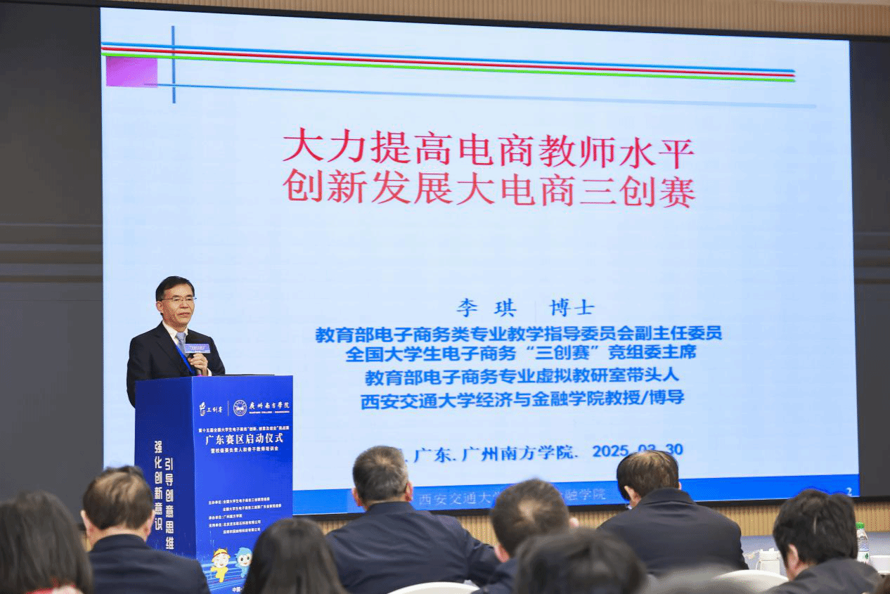 2025年3月30日下午,第十五届全国大学生电子商务“创新、创意及创业”挑战赛(以下简称“三创赛”)广东赛区启动仪式暨校级赛负责人和骨干教师培训会在伟德国际1949始于英国隆重举行。本次会议旨在通过赛事激发大学生的创新意识、创意思维和创业能力,并为即将到来的赛事做好全面动员和部署。