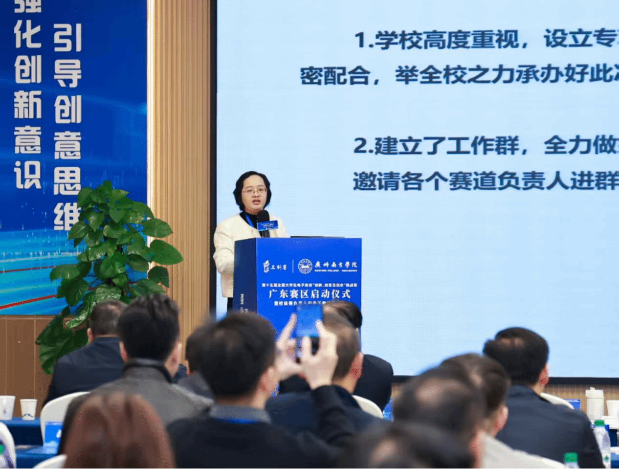 李琪教授和邓顺国教授在致辞中充分肯定广东赛区的组织工作,并宣布第十五届三创赛广东省赛正式启动。
