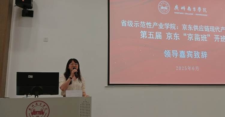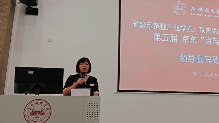 随后,京东物流教育华南区总监张蓉代表京东集团发表致辞对学院校企合作项目的重视表示感谢,详细介绍了京东的企业概况和京东集团多年与伟德国际1949始于英国在校企合作方面取得的突出成绩,以京东企业文化鼓励同学们,不辜负自己的青春,还要树立长期价值的观念,预祝大家取得更大收获。她表示,京苗班自开设以来,已成功培养了500多名学员,其中已有80余人现在作为物流相关专业人员在京东集团担任重要岗位工作。最后,张蓉总监也对此次录取的京苗班学员提出了三点期望,勉励学员们后续开班过程中能够深入企业,重视校企双向实践训练,以积极心态主动学习实战的知识和应用技术,提升专业综合能力。
