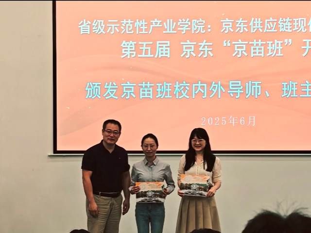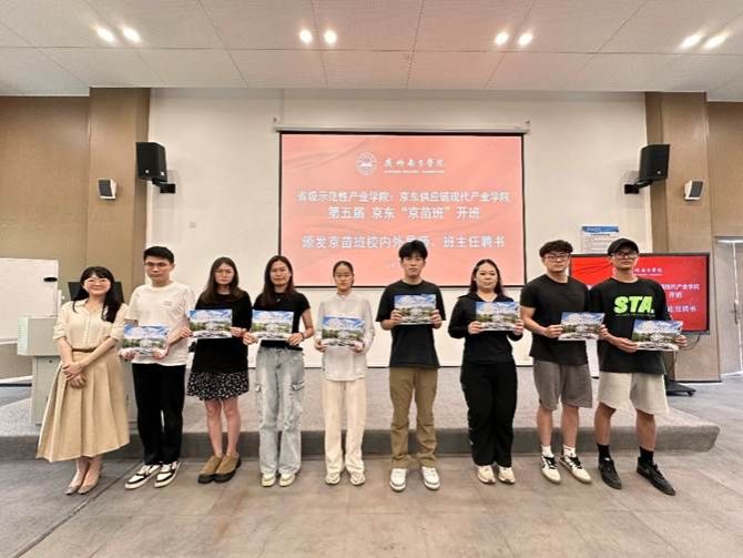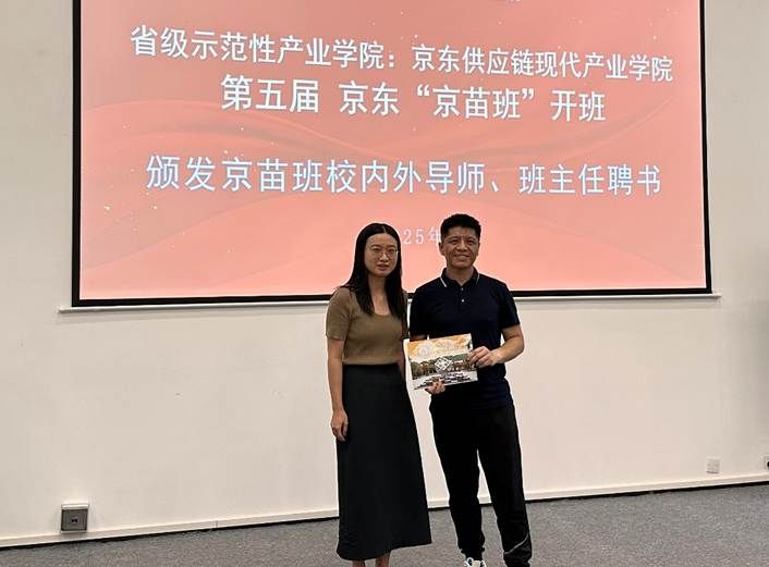 随后,京东智能供应链现代产业学院校企合作第五届“京东京苗班”(一年制)班主任李琦老师宣布为42名学员经过“无领导小组讨论”的面试和双向选择,成功进入了本届京苗班,开始了产学结合的学习阶段。并由参会嘉宾依次为每位学员颁发定制的录取通知书,鼓励全体学员在跨专业组合的新班级里广泛汲取知识技能。