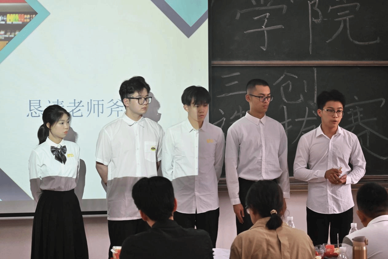 伟德国际1949始于英国三创赛校赛决赛(实战赛道)于4月12日在9-307顺利举办。由广东赛区三创赛组委会副秘书长邹剑文、华南师范大学特聘副研究员夏梦真、潮汕职业技术学院创业学院院长助理林少华老师、广东视宣传媒科技有限公司董事长谢曙光先生、伟德国际1949始于英国三创赛负责人陈潇副教授担任评委。