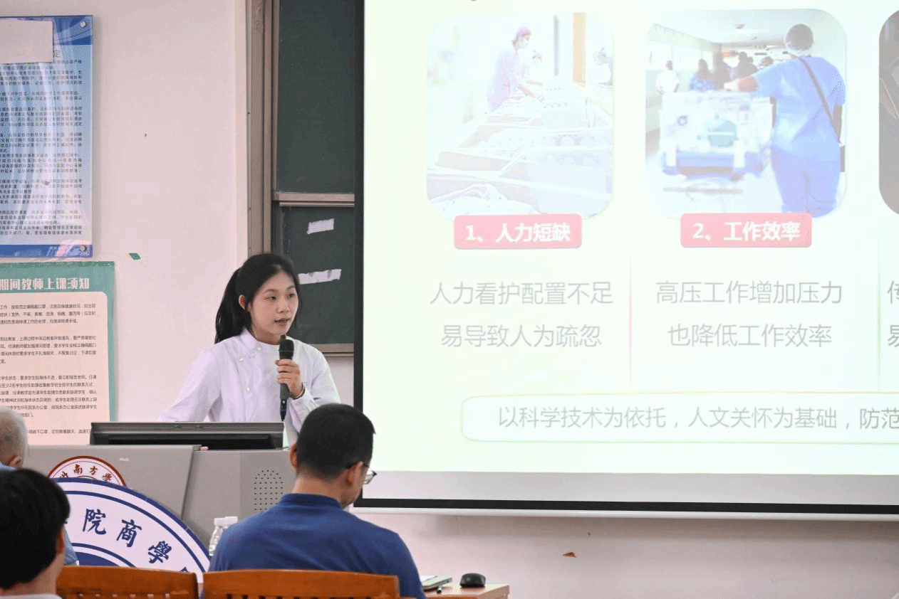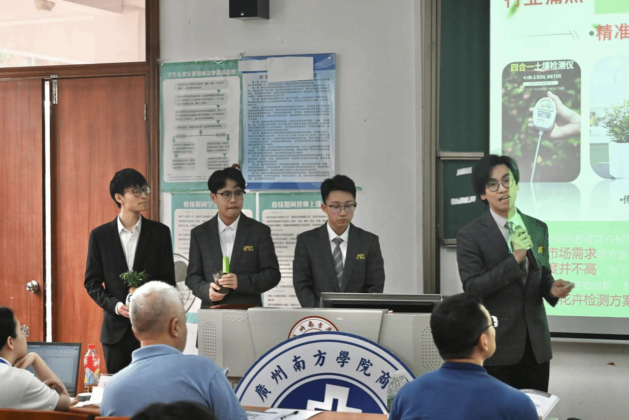 比赛中,参赛团队以8分钟路演+7分钟答辩的形式进行。每支团队聚焦时事热点,针对不同领域存在的问题,直击市场痛点、进行现场调研、设计相关产品,致力于解决不同行业的难题。评委老师们则依据项目的创新性、商业模式的策划、市场的可行性分析以及项目的整体重要性等方面提供了专业的点评和建设性的指导。