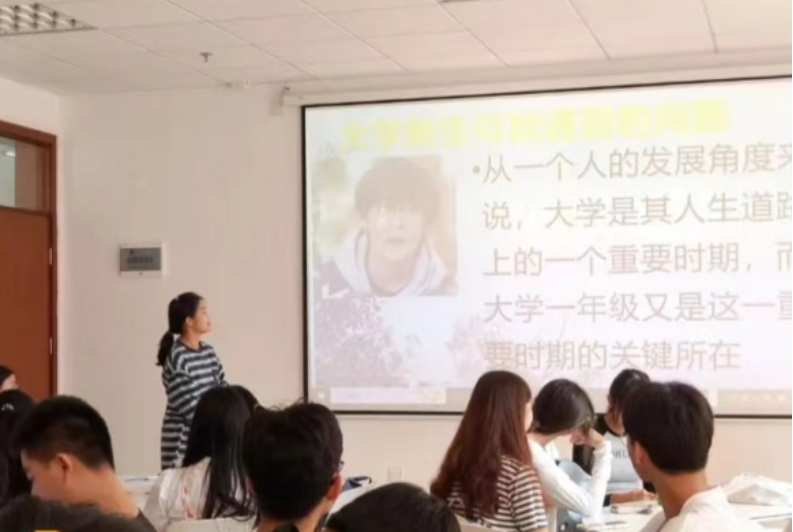 为了让新生了解并快速适应大学生活,2023级市场营销专业于2023年10月25日9点45分在新综合楼324开展主题班会。活动由两班班长杨丽彤、戴雨航、温钰婷和蔡晴晴共同主持,共有52名同学参与本次班会。