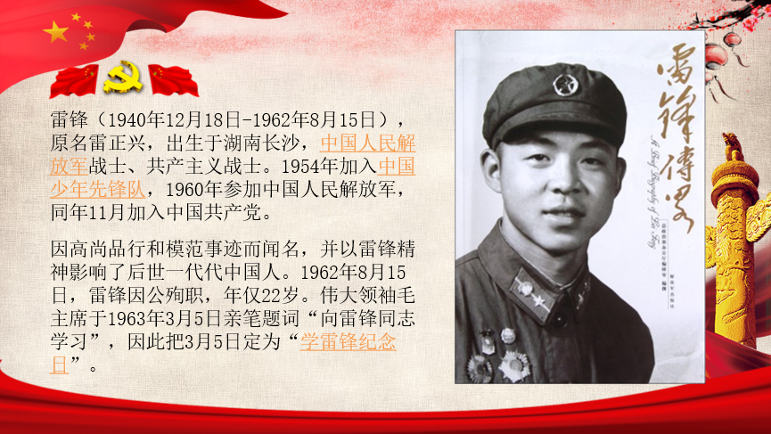 首先,我们在团支书的带领下认识“什么是雷锋”。主要介绍雷锋同志的生平,重温了雷锋同志的一生,了解雷锋同志苦难的童年,奋斗的青春岁月,以及不幸的意外牺牲。
