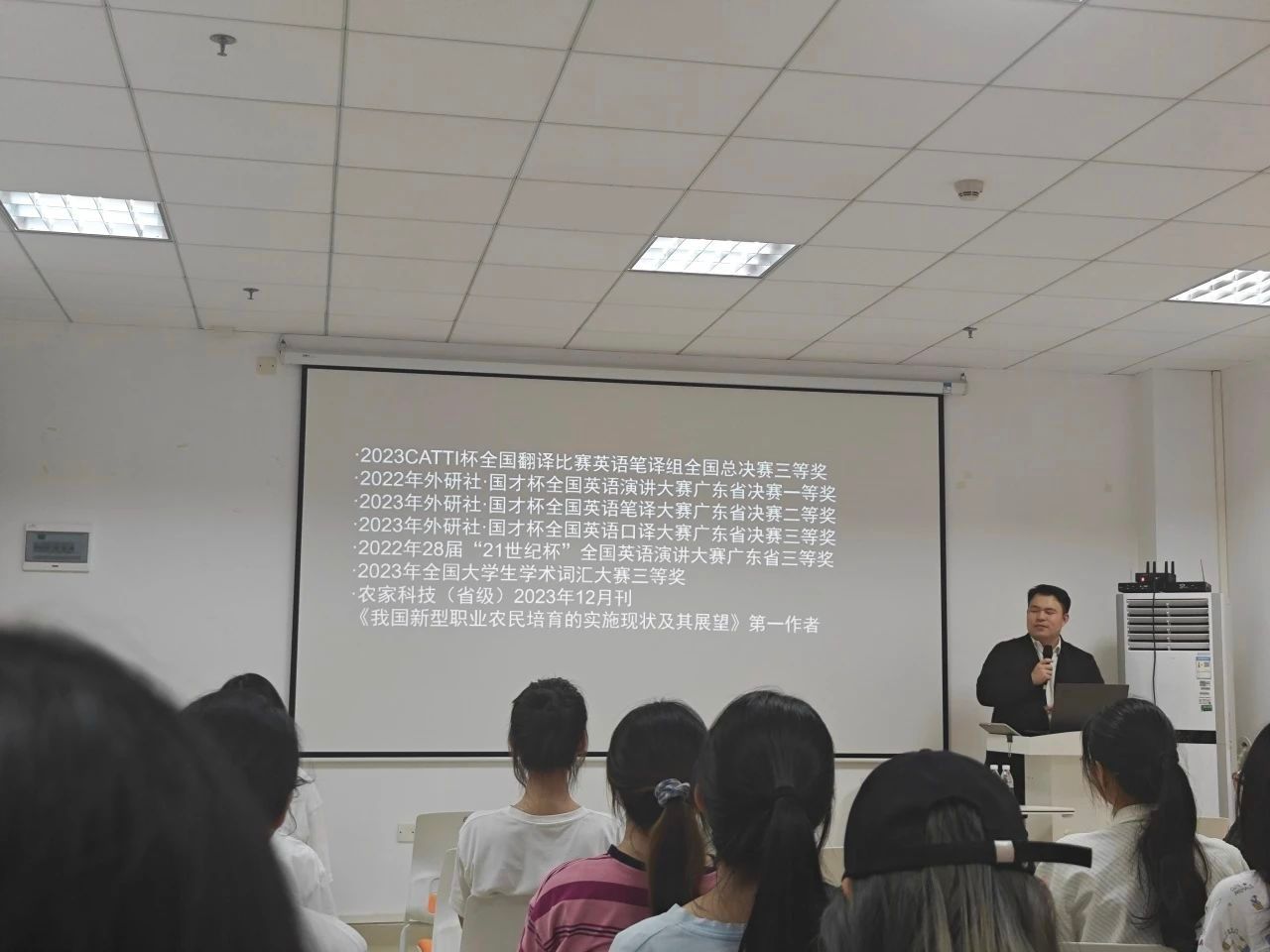 张自昊同学表示,2020年疫情期间成为他人生的转折点,他不甘心就此坠落,内心有股力量激励他往前走,于是他毅然决然重返校园。返校后,他激励自己参加各种比赛,不知不觉中荣获多个奖项。于此,张自昊同学鼓励同学们要积极参加各类校、院活动,可以从中不断地积累实践经验。在自我动机的驱使下,2023年下半年,张自昊同学报名了研究生考试,虽然只历时了一个月零十天,但最终以415的分数上岸广东外语外贸大学。