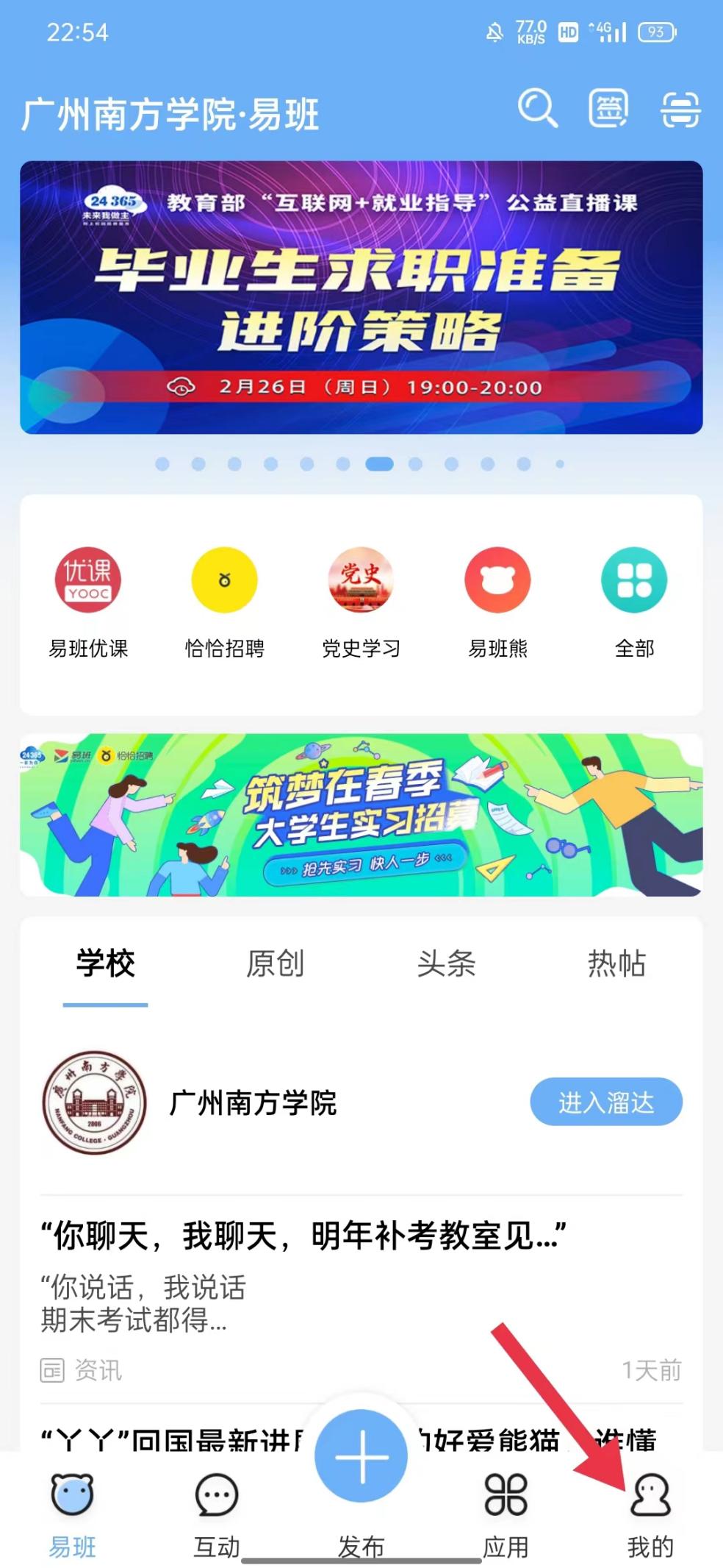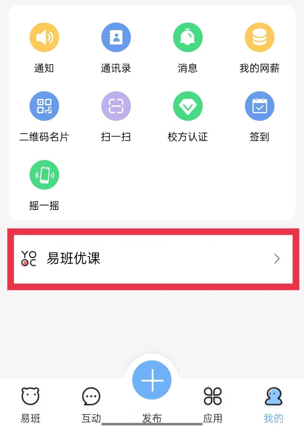 ②进入个人页面后点击下方“易班优课”
