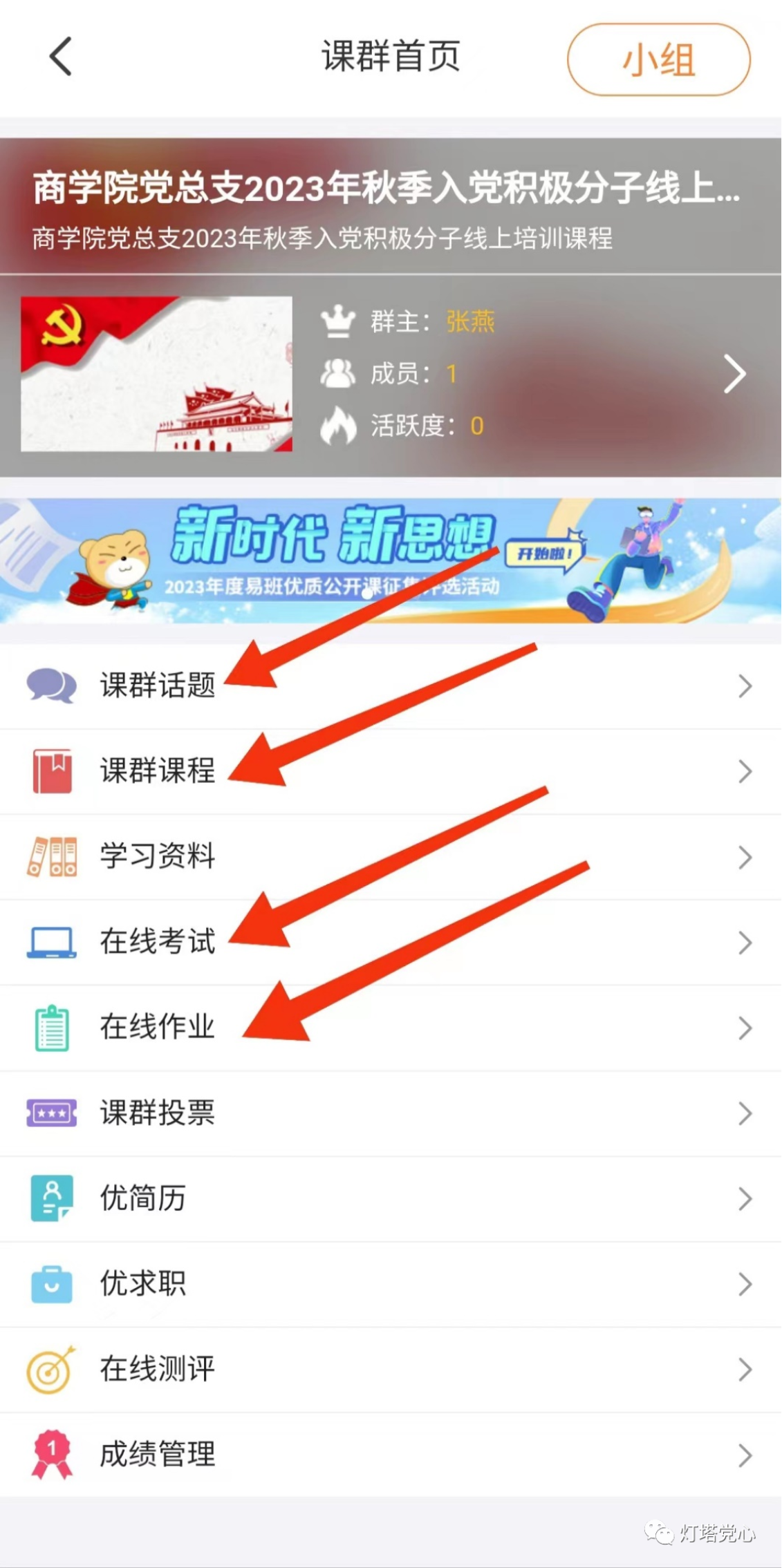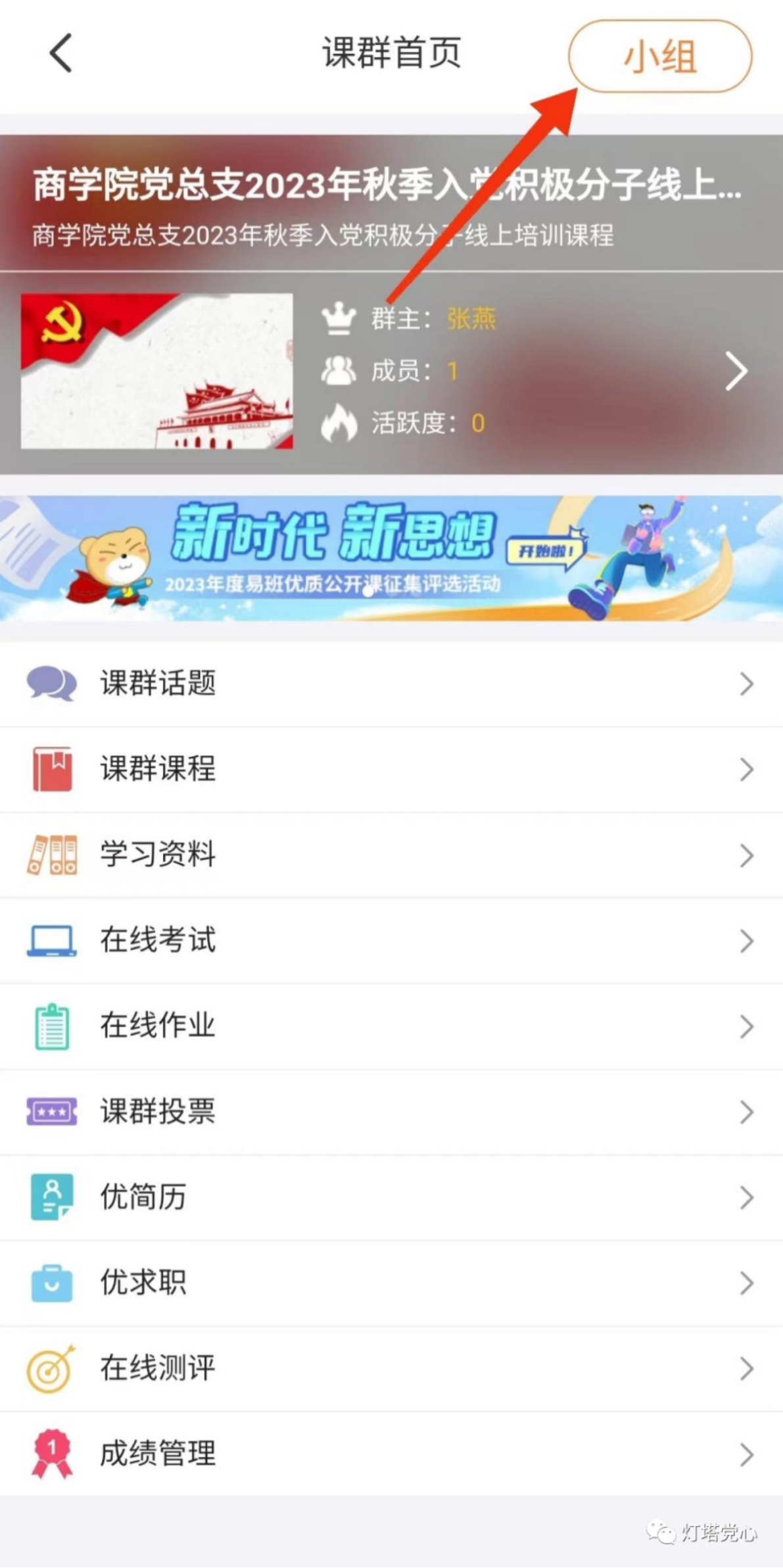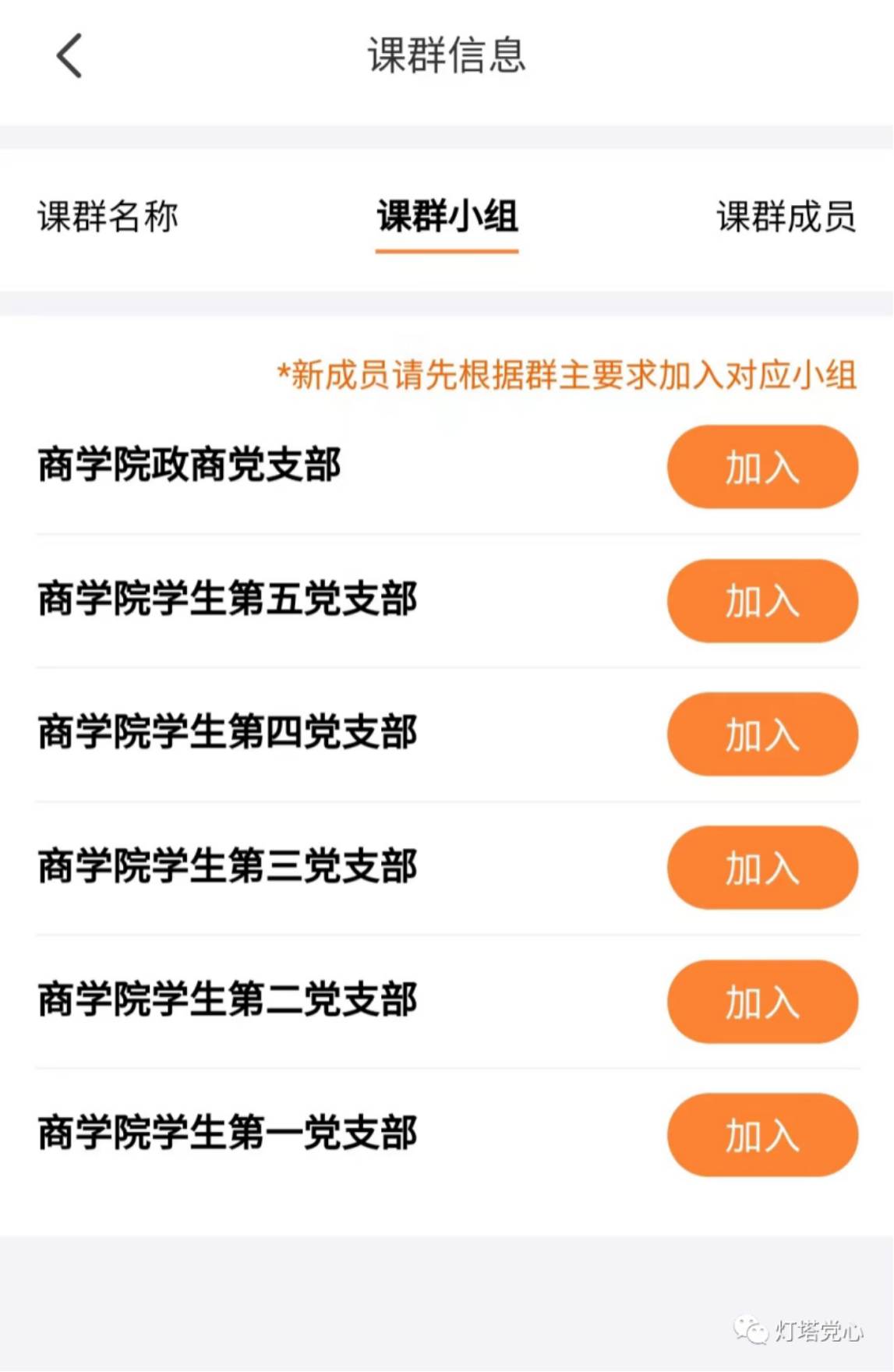 ④ 加入后在课群小组页面中选择自己所在的党支部