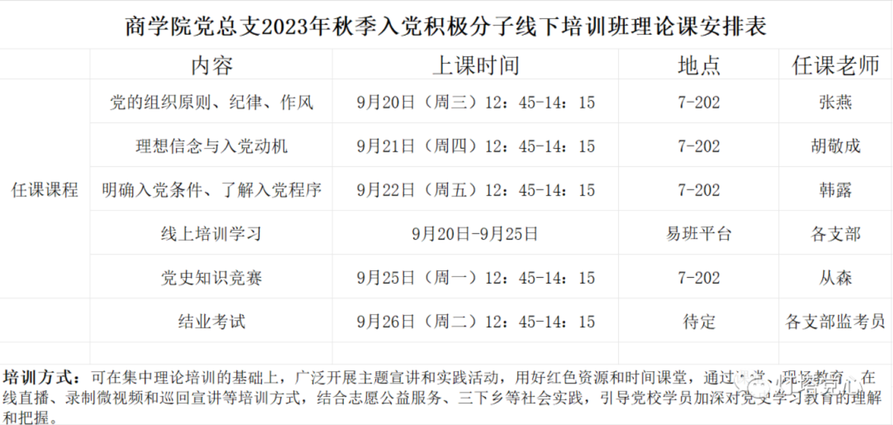 2023年秋季入党积极分子的学习时间安排如下,上课地点将另行通知,请各党支部入党积极分子安排好时间,准时参加课程及考试。