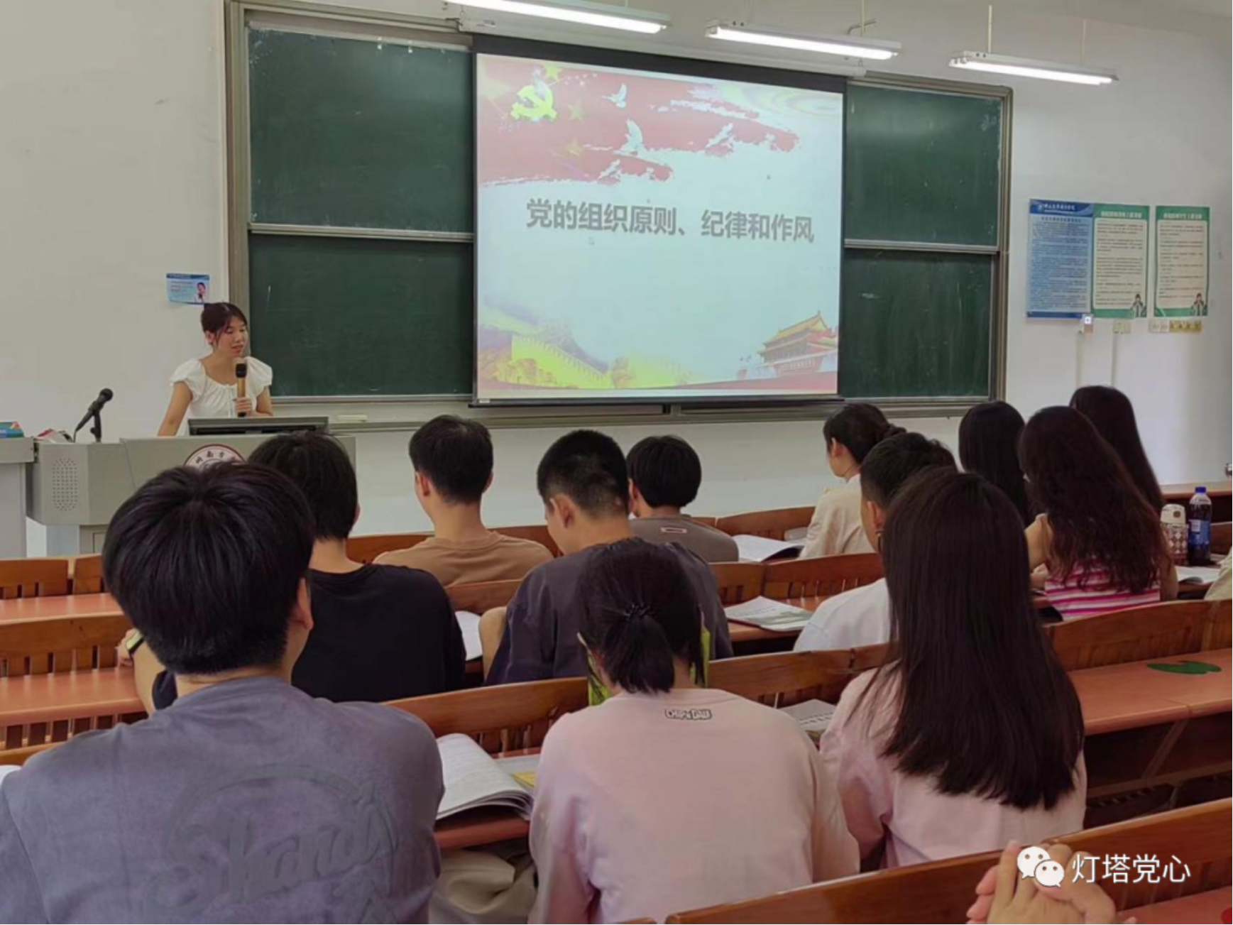 第一次培训于2023年9月20日在7教202开展,主讲人是张燕老师。张老师首先从党的成就引出做出伟大贡献离不开优良的纪律和作风,其次强调了民主集中制是我们党的根本组织原则和领导制度,要厘清民主与集中的关系,不能曲解和割裂。随后借用习近平总书记的话:“党的作风就是党的形象,关系人心向背,关系党的生死存亡。”强调没有规矩不成方圆,教导同学们要自觉遵守党的纪律和国家法律,执行党的决定、服从组织分配,积极完成党的任务。
