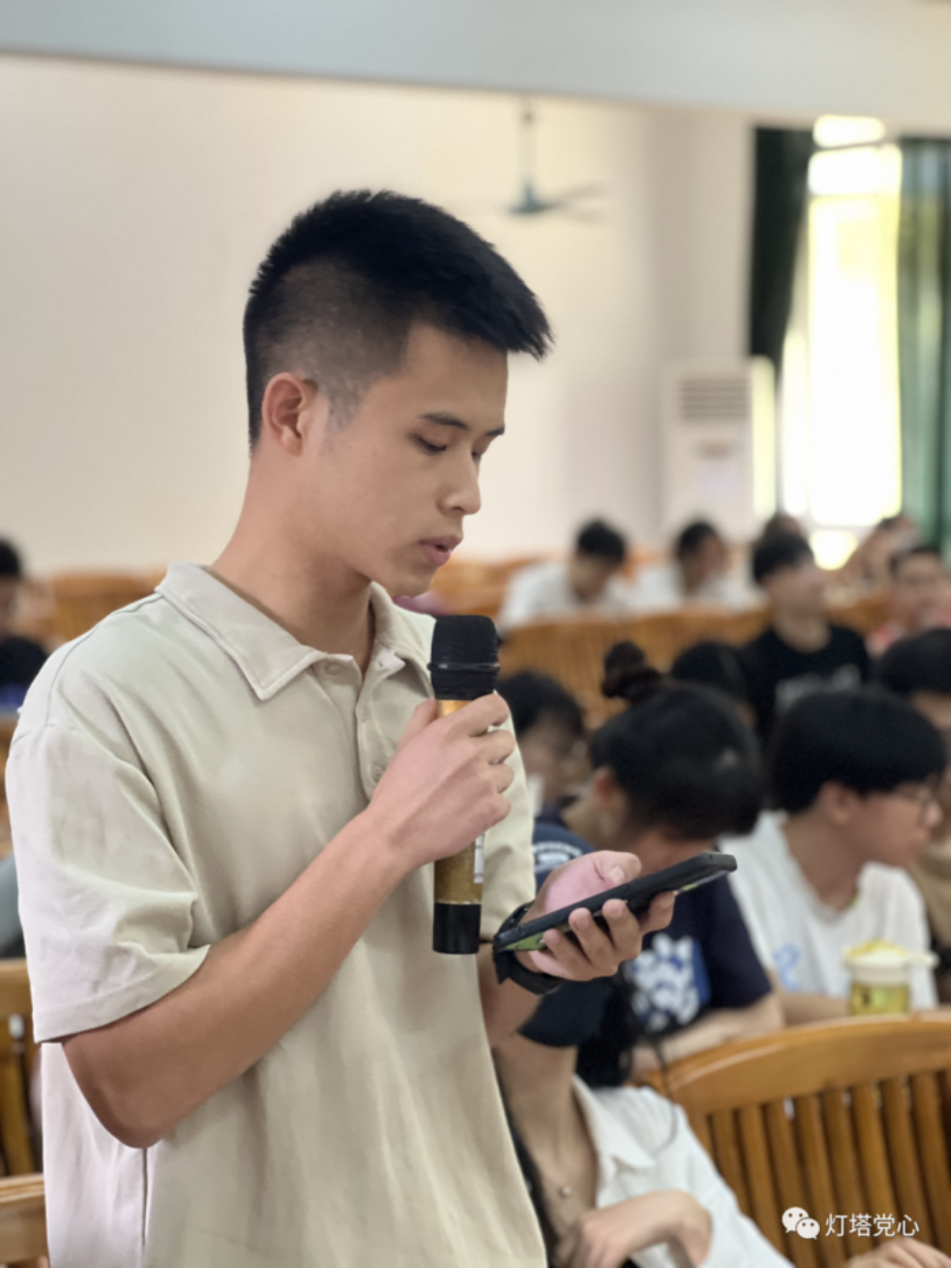在讨论环节设有两个开放题,第一题是如何组织学校准备开展的“学党史强信念跟党走”主题活动,第二题是“以史为鉴,可以知兴替”,“我们要用历史映照现实,远观未来”体现了怎样的历史思维。题目公布之后,每个党支部有五分钟的思考和讨论时间,时间到后,入党积极分子们积极结合自身实际,从前期准备、活动内容、总结收尾这几个方向作答,对入党的价值和使命有更深刻的体会和理解。