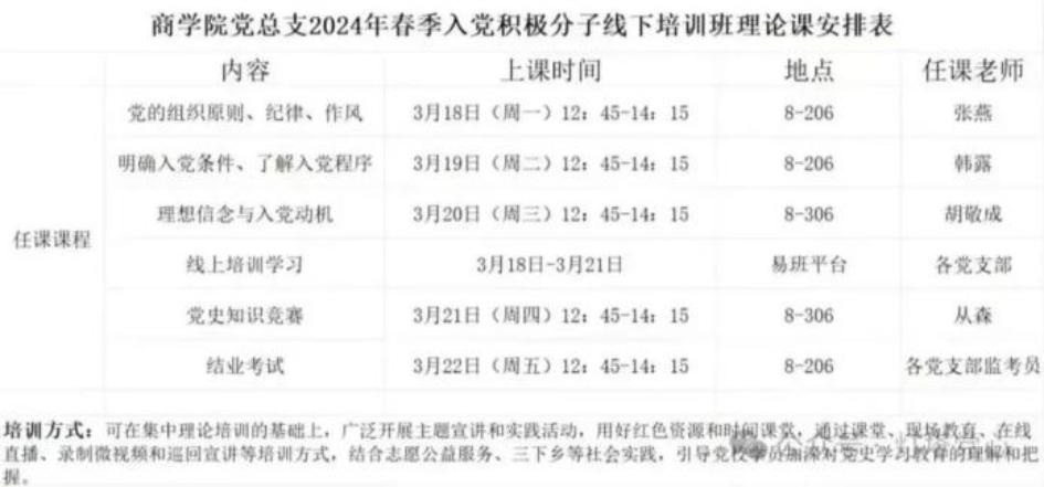 2024年春季入党积极分子学习时间安排如下,请各位入党积极分子安排好时间,准时参加课程及考试。