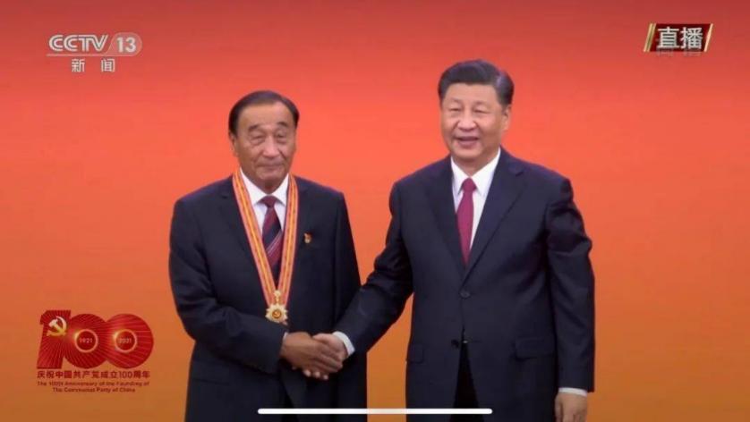 2021年6月29日上午,在庆祝中国共产党成立100周年“七一勋章”颁授仪式上,石光银在人民大会堂接受党内最高荣誉表彰。“石光银,治沙造林事业的模范代表,40多年坚持与荒沙碱滩不屈抗争,创造治沙与致富相结合的新模式,为彻底改变毛乌素沙漠南缘‘沙进人退’的恶劣环境作出杰出贡献。”
