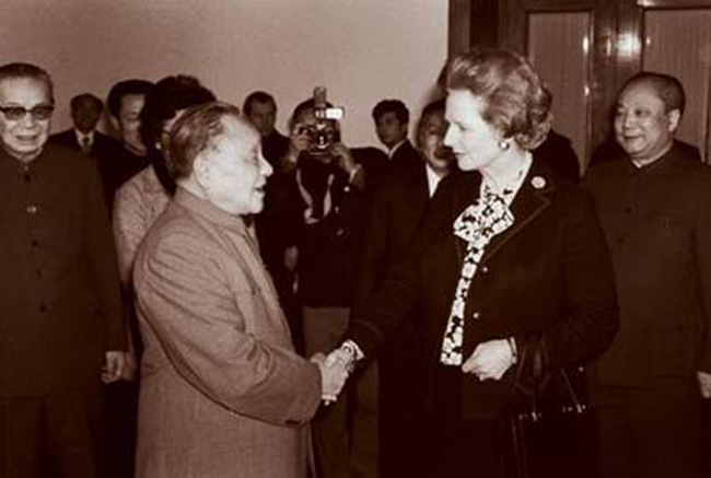 9月24日,在人民大会堂福建厅邓小平与撒切尔夫人正式会面。会谈一开始,撒切尔夫人先发制人强调关于香港的三个条约即《南京条约》、《北京条约》、《展拓香港界址专条》在国际法上仍然有效,不可单方面废除。邓小平直接阐明原则:主权问题不是一个可以讨论的问题,中国在这个问题上没有回旋的余地。