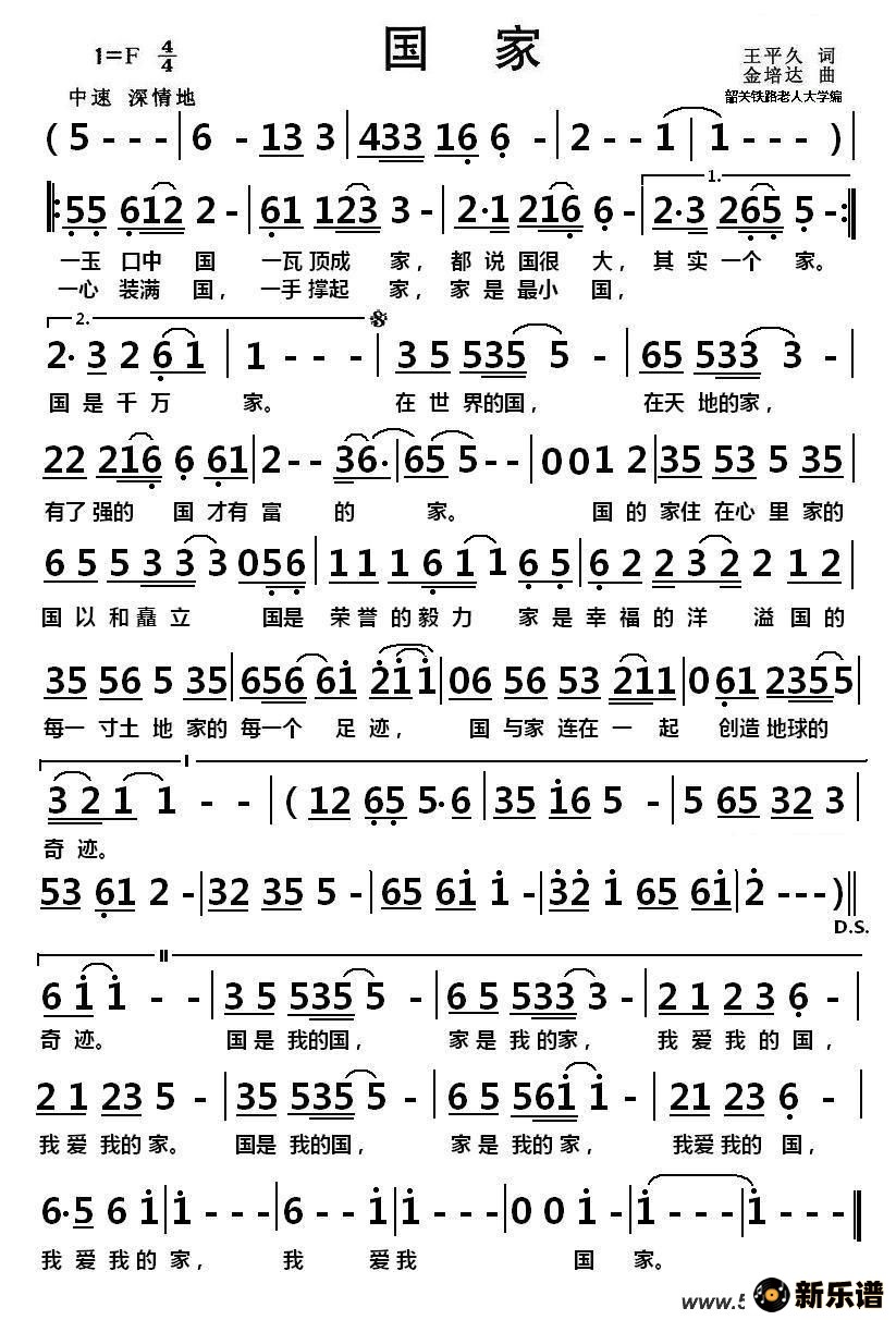 作者王平久曾说过:写下歌词——《国家》这个题目后曾感到后怕。但“国家”就是“国与家”血脉相连的这一创意,又让王平久打开创作思路,将歌词一气呵成。