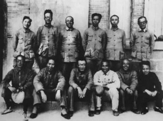 后排右起:张闻天、周恩来、刘少奇、彭德怀、秦邦宪、陈云