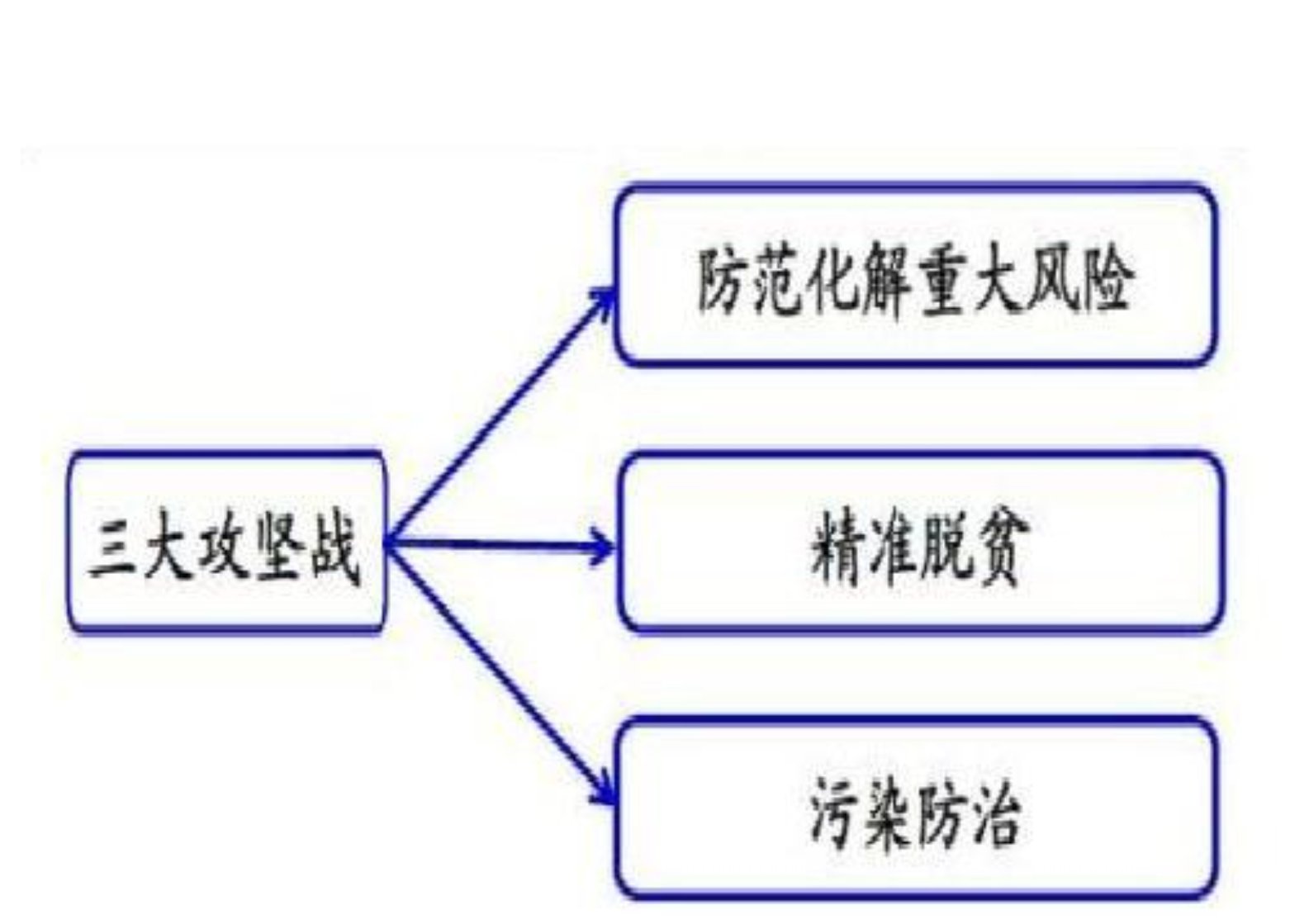习近平总书记强调:“防范化解金融风险,事关国家安全、发展全局、人民财产安全,是实现高质量发展必须跨越的重大关口。精准脱贫攻坚战已取得阶段性进展,只能打赢打好。环境问题是全社会关注的焦点,也是全面建成小康社会能否得到人民认可的一个关键,要坚决打好打胜这场攻坚战。”