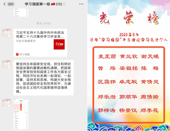 学习强国每日打卡、每月“学习之星”表彰
