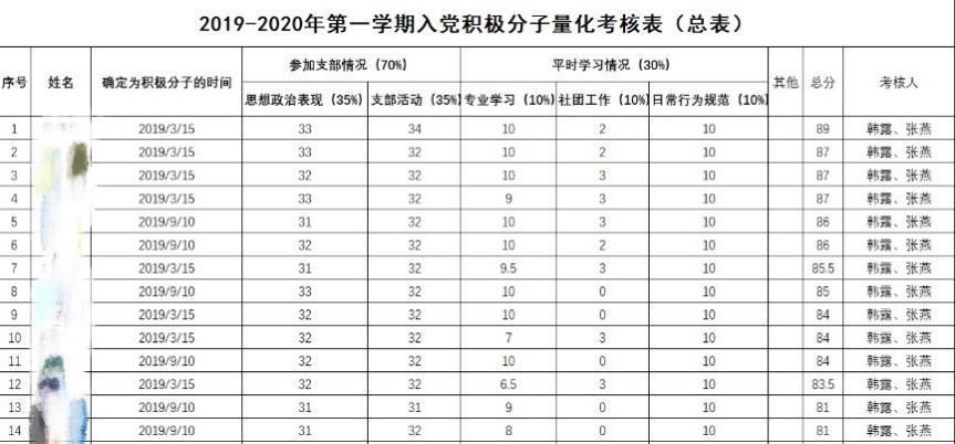 2019-2020年积极分子量化考核表