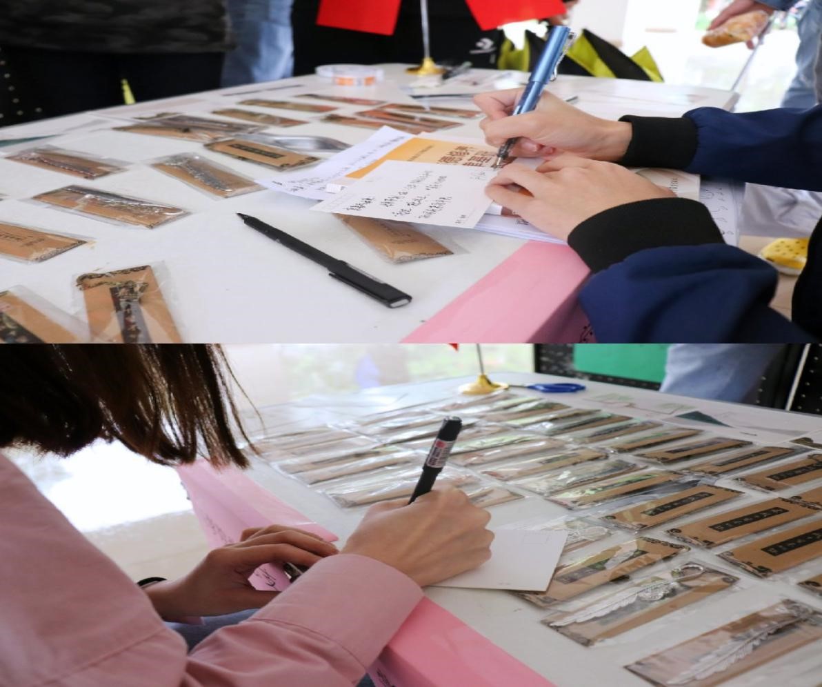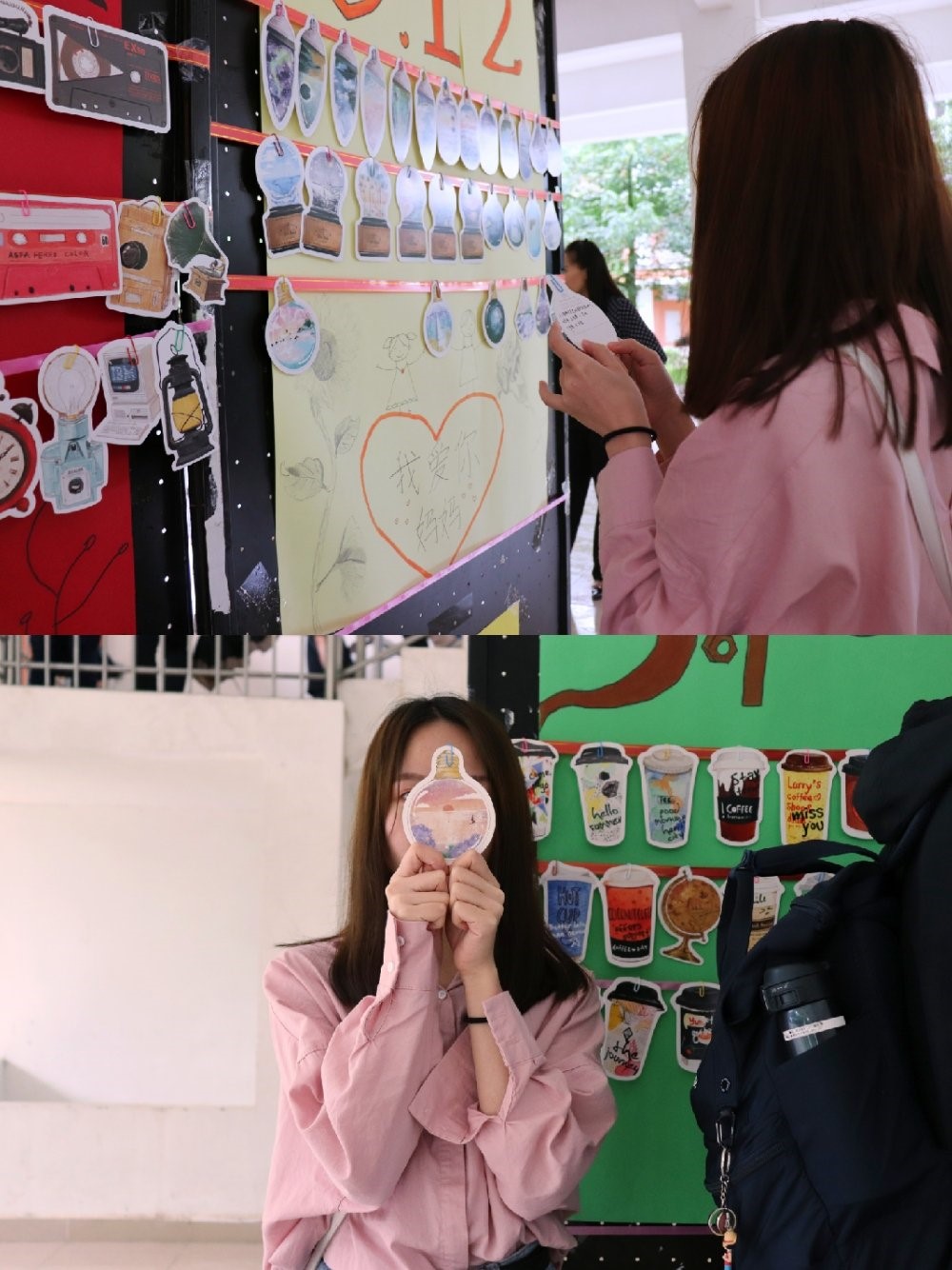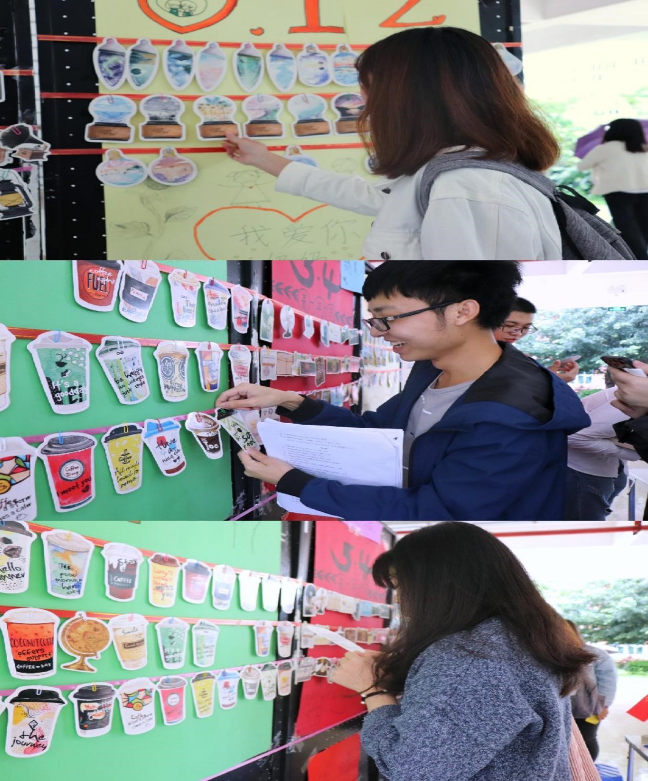 “五月文化节”活动以“趣味答题”和“节日寄语”两种形式展开。“趣味答题”是指在展板展示“5.1劳动节”、“5.4青年节”、“5.12母亲节”三个模块,每个模块答对一道题即可获得一份精美书签。