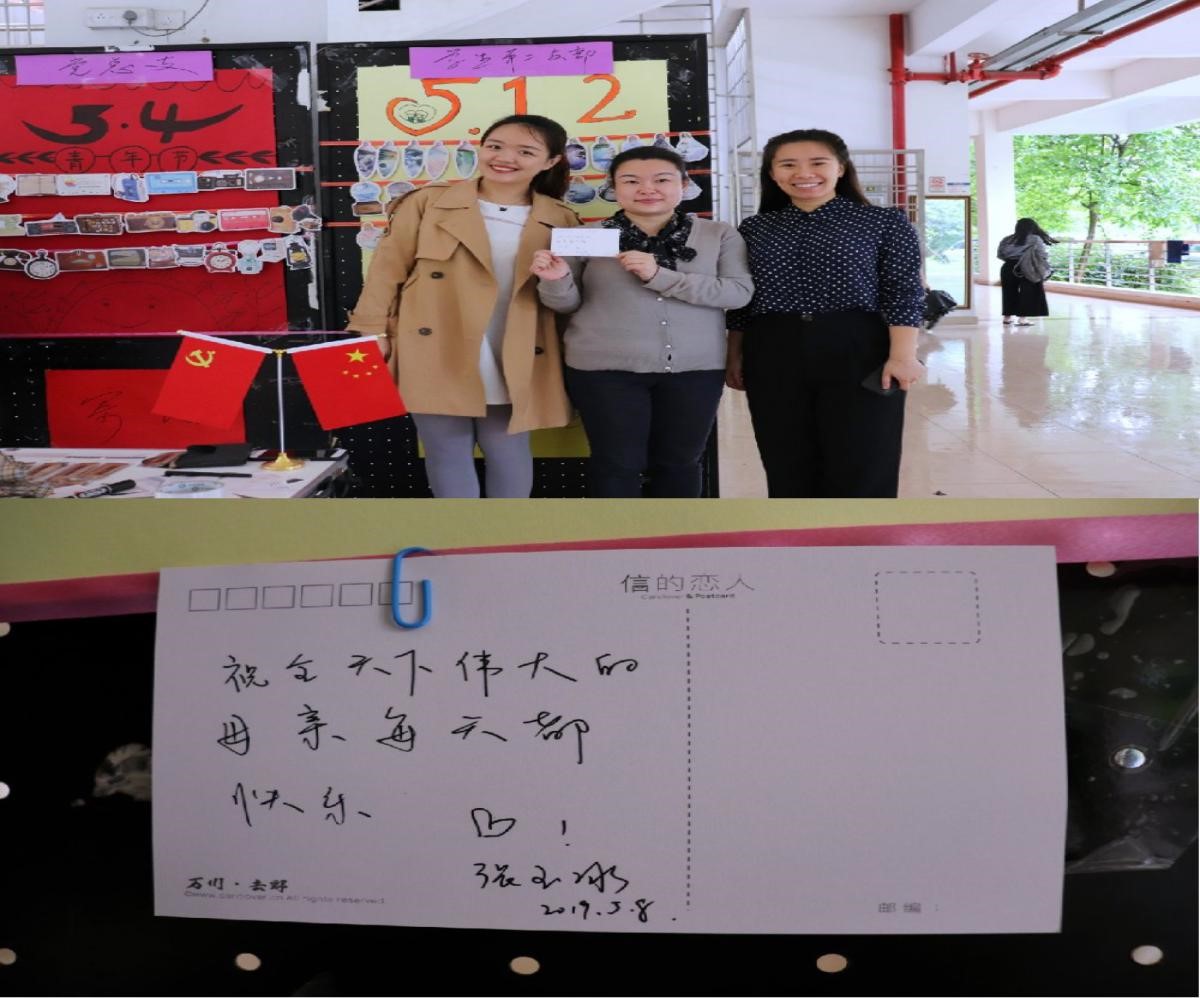 “节日寄语”是指同学们根据自己的实际情况,在明信片上写上自己对节日的感想及祝福,并将这份心意挂在展板的寄语墙上。有的同学传达了自己对劳动人民的深深谢意,有的同学作为现代青年抒发了自己的满腔热血,还有的同学向母亲献上了浓浓爱意和无尽思念。
