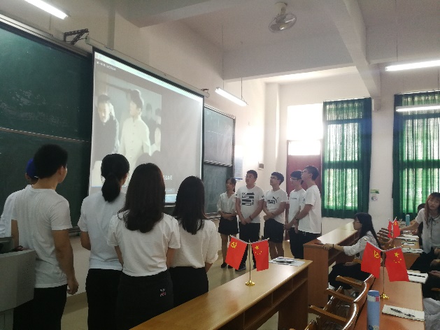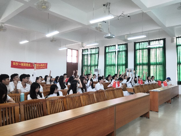 为了更深入地学习贯彻习总书记的精神指示,本次会议通过红**与音频的出处竞猜,让与会同志重新回顾青年在国家以往发展历程中所担当的重要责任。在会议过程中,每个小组各显神通,利用所学的知识与生活经验结合,积极地抢答、发言。在完成竞猜环节后,各小组依次上台为红**配音,同志们慷慨激昂、气势磅礴的演出仿佛将大家拉回到100年前那个风云变幻的五四峥嵘岁月,用强而有力的声音告诉自己与身边的人,已经做好了继承五四荣光的准备。