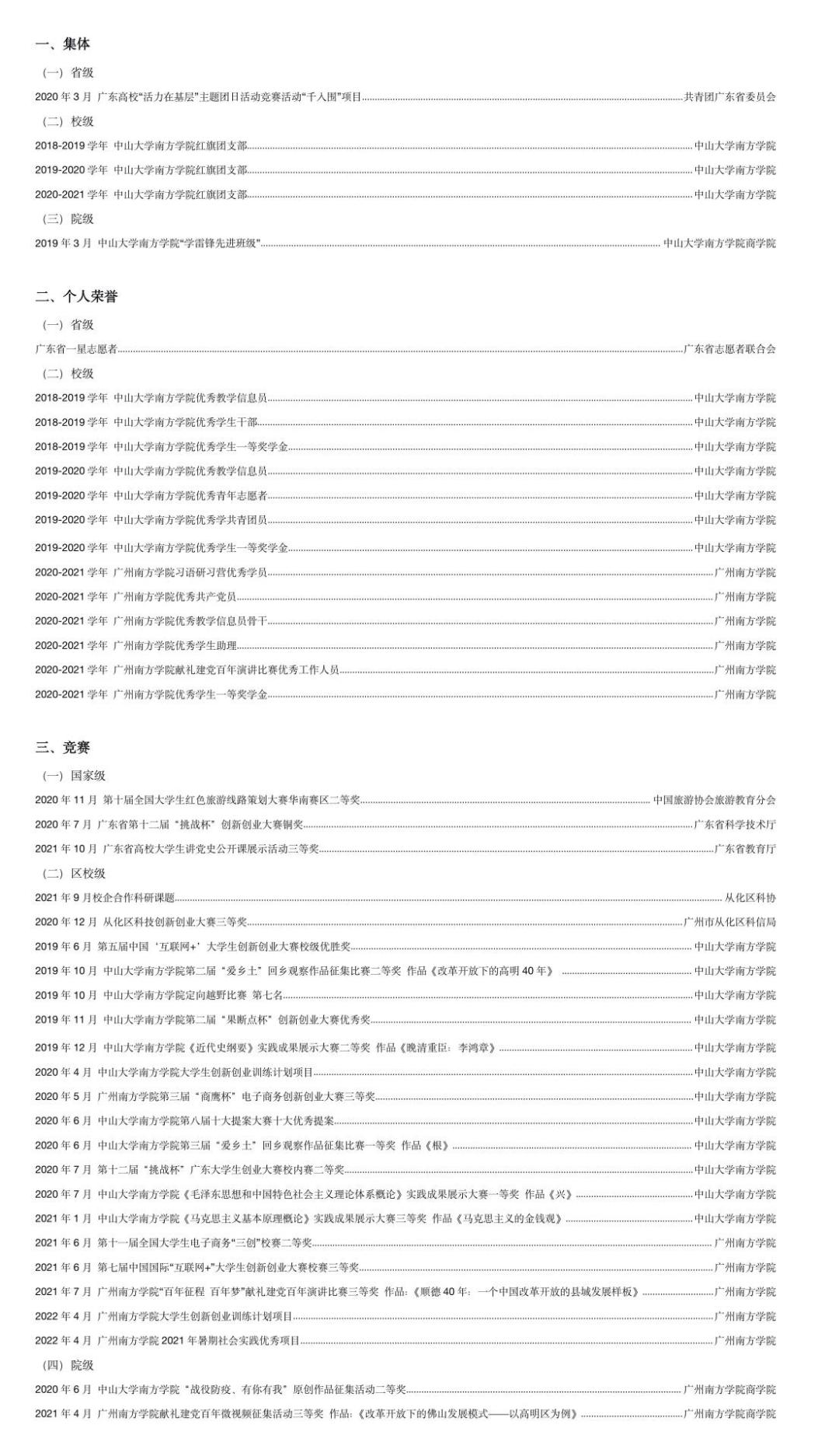 2018-2022年 18工商管理1班学习委员
