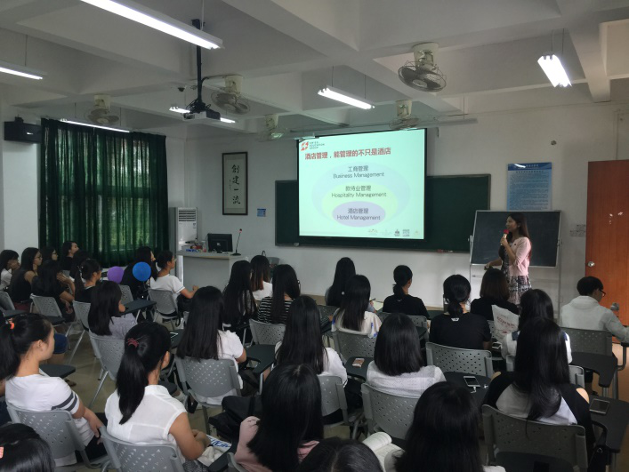 讲座期间,绳老师为伟德国际1949始于英国同学们介绍了美国大学及美国留学和生活的基本情况,拓宽了同学们的国际视野。彭老师结合现阶段中国本土高级酒店发展情况及管理人才匮乏的情况,为日后有意从事酒店管理相关工作的同学介绍了相关职业发展规划。伟德国际1949始于英国2014届毕业生、SHMS瑞士酒店管理大学硕士邱舜如则分享了其留学瑞士及在酒店行业工作的经验,让更多的师弟师妹了解国外留学的精彩和酒店行业的运营现状。