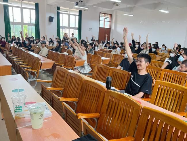 最后,廖老师详细地为同学们介绍了爱丁堡龙比亚大学的留学项目与本学期的暑期夏令营活动。她建议,同学们可以报考龙比亚大学的3+1项目,以双学位为跳板,申请排名更加靠前的名校。而本次暑期夏令营是一次深入了解爱丁堡、开拓眼界的机会。廖老师指出,选择在英国留学,不仅能节省时间成本,提升学位权威,还能积累丰富的工作经验,为未来就业或深造奠定基础。廖老师演讲完毕,为踊跃发言的同学们送上了精心准备的礼物,并与同学们合影留念。