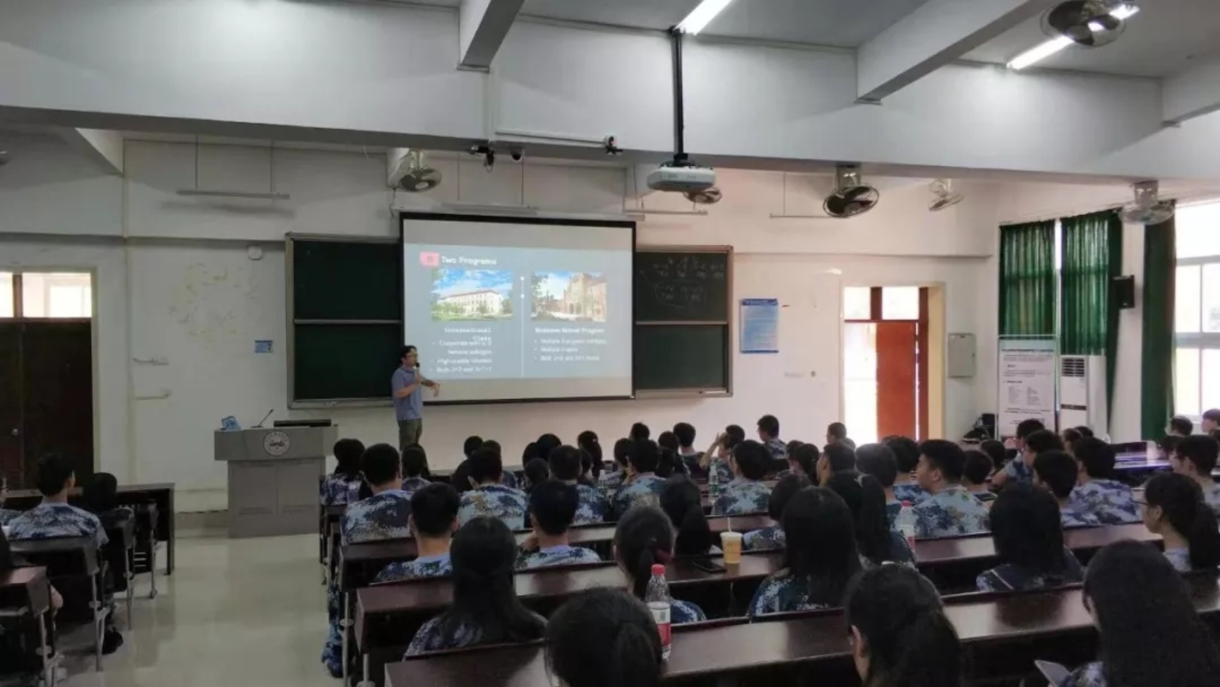 首先,萧裕中老师就中美2+2项目以及伟德国际1949始于英国国际教育中心中外合作项目进行了详细介绍,使在座的同学们对两个项目有了进一步的了解。萧老师流利的英文激发了同学们对两个项目的兴趣。