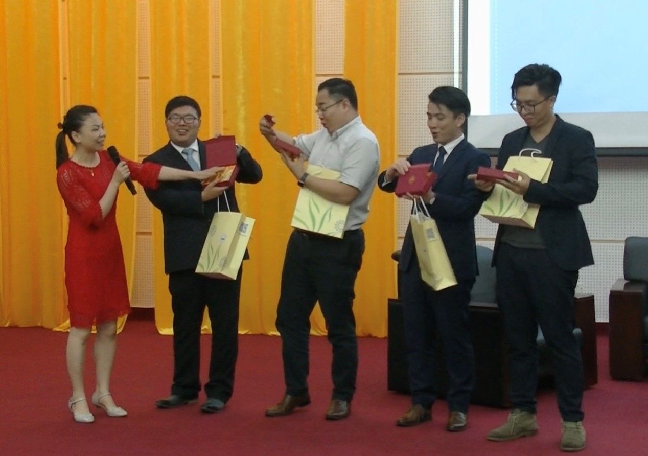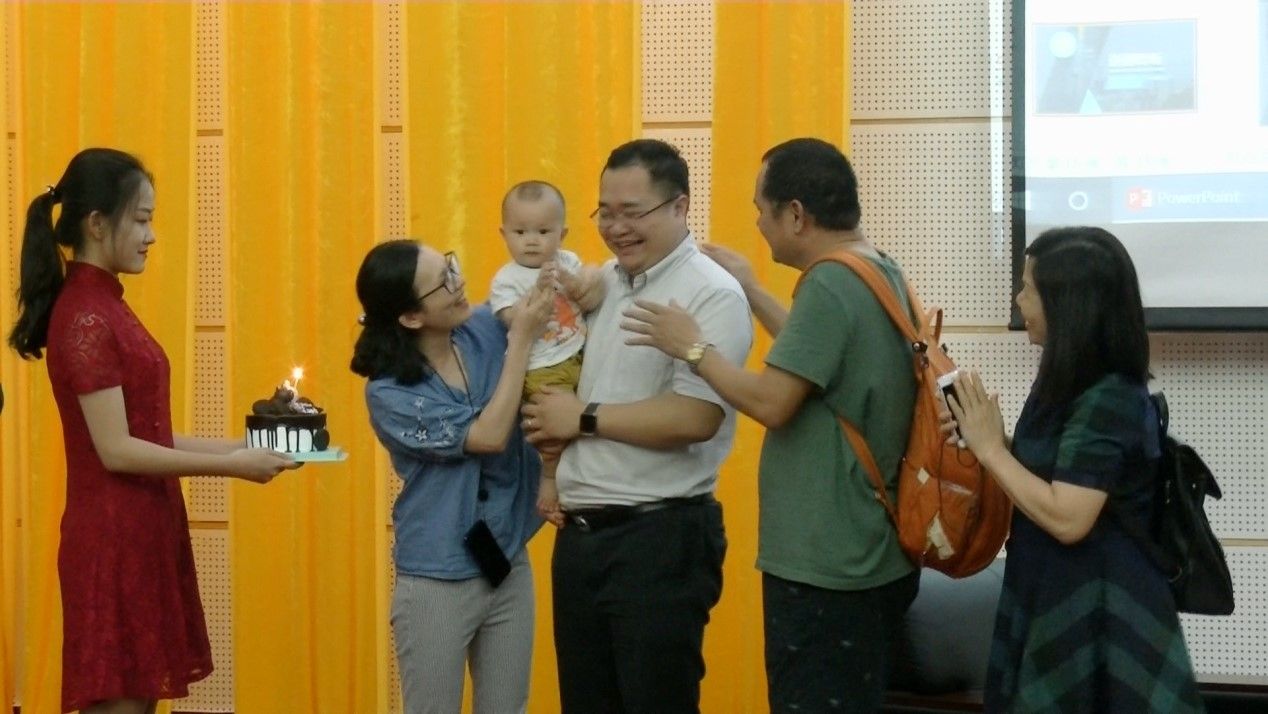 依依校友心,浓浓母校情。各位校友在接到母校的邀请后,为了给师弟师妹传经送宝,工作繁忙的他们挤出时间,认真准备此次的演讲内容,陈宇聪校友甚至从北京远赴而来。此次回校,校友们感慨良多,走上社会,方知校园生活的美好;经过洗礼,才知道惟有同学友情的可贵。在这里不仅收获了学业,更收获了至真至纯的友谊,甚至遇到了终身的伴侣,2008级经济学校友黄先宁就是其中一位代表,他的妻子与他是同届的校友。校友总会得知5月18日是黄先宁宝贝儿子一周岁生日这个消息,精心准备了一个生日蛋糕,在他演讲完毕,陈思思老师邀请他的妻儿、父母走上讲台,在全场的师生的生日祝歌下,全家人一起吹灭蜡烛。这温情十足的场面,这突如其来的幸福,让黄先宁校友一时哽咽,不知如何如何表达心中的激动。静下来后,他眼泛泪光,说道:“谢谢大家!南方学院就是我的家,一个温暖的家,我在这里成长成才,我在这里找到我的爱情,今天,我的儿子在这里度过他人生第一个生日,这实在太难忘了,太有意义了,谢谢母校!”校友们感慨,做中大南方校友实在是幸福满满!