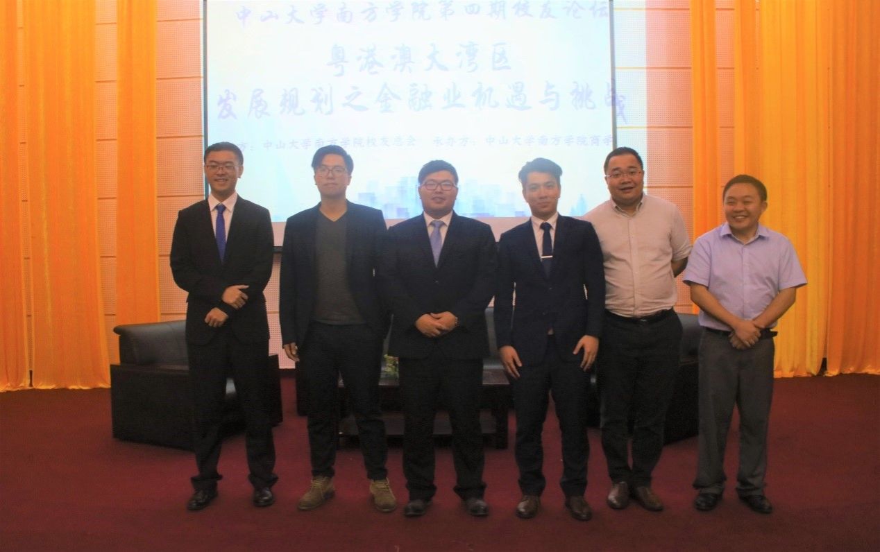 2019年5月17日19时,中山大学南方学院第四期校友论坛在图书馆学术报告厅顺利举行,本次论坛的主题为“粤港澳大湾区发展规划之金融机遇与挑战”。校友总会邀请了2008级经济学专业黄先宁(广州金控期货有限公司深圳营业部总经理)、2009级酒店管理专业校友陈宇聪(光大金控财金资本有限公司营业部总经理)、2009级会计学专业校友苏志东[毕马威企业咨询(中国)有限公司风险高级顾问]、2013级工商管理专业校友苏显铸(深圳市金斧子基金销售有限公司团队主管/高级投资顾问)做为主讲嘉宾。中山大学南方学院常务副校长、副书记唐燕老师,伟德国际1949始于英国院长何兴强教授,学校团委副书记、学校校友总会秘书长陈思思老师,学生工作部副部长刘浪英老师,外国语学院党总支副书记兼学生工作办公室主任马思伟老师,伟德国际1949始于英国互联网金融专业主任朱海鹏老师,伟德国际1949始于英国行政办公室主任聂聪老师出席了本次论坛。