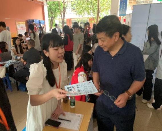 参会的大三邵同学告诉我们:前期自己已对参会的各家公司做了背调,了解企业的岗位需求;自己作为大三的学生,虽然还没有正式走进职场,但是本次的招聘会让她提前了解企业的用人要求,为以后的学习和求职做准备。