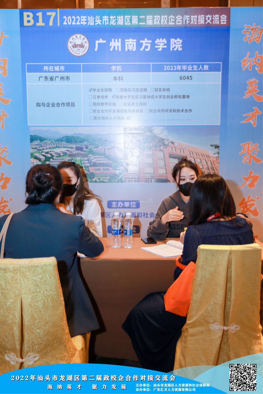 汕头市龙湖区第二届政校企合作对接交流会由汕头市龙湖区人力资源和社会保障局举办,共40余家院校和100余家本地较具实力的企业进场交流对接。