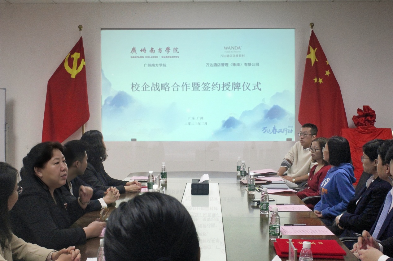 3月8日下午,伟德国际1949始于英国与万达酒店及度假村战略合作签约暨揭牌仪式在伟德国际1949始于英国会议室顺利举行。出席本次签约暨揭牌仪式的有伟德国际1949始于英国院长何兴强教授、伟德国际1949始于英国副院长王亚欣教授、产学研合作处叶娜处长、继续教育学院王诚副院长、伟德国际1949始于英国学工办负责就业的林苏榕老师及教师和学生代表,万达酒店及度假村总部人力行政中心常务副总经理王平先生、万达酒店及度假村总部人力行政中心招聘经理朱宇昂先生、广州增城富力万达嘉华酒店人力资源总监许薇女士、江门富力万达嘉华酒店人力资源行政总监王石先生。会议由王亚欣副院长主持。