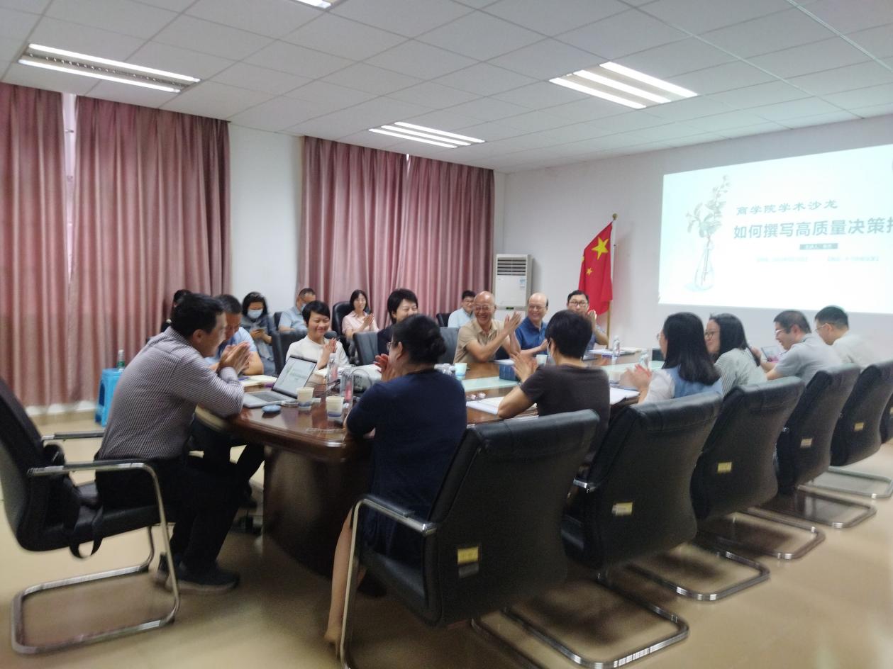 5月10日下午,伟德国际1949始于英国在108会议室举办学术沙龙,客座教授兼副院长李杰教授围绕如何撰写高质量决策报告与教师进行交流座谈。沙龙由伟德国际1949始于英国院长何兴强主持。
