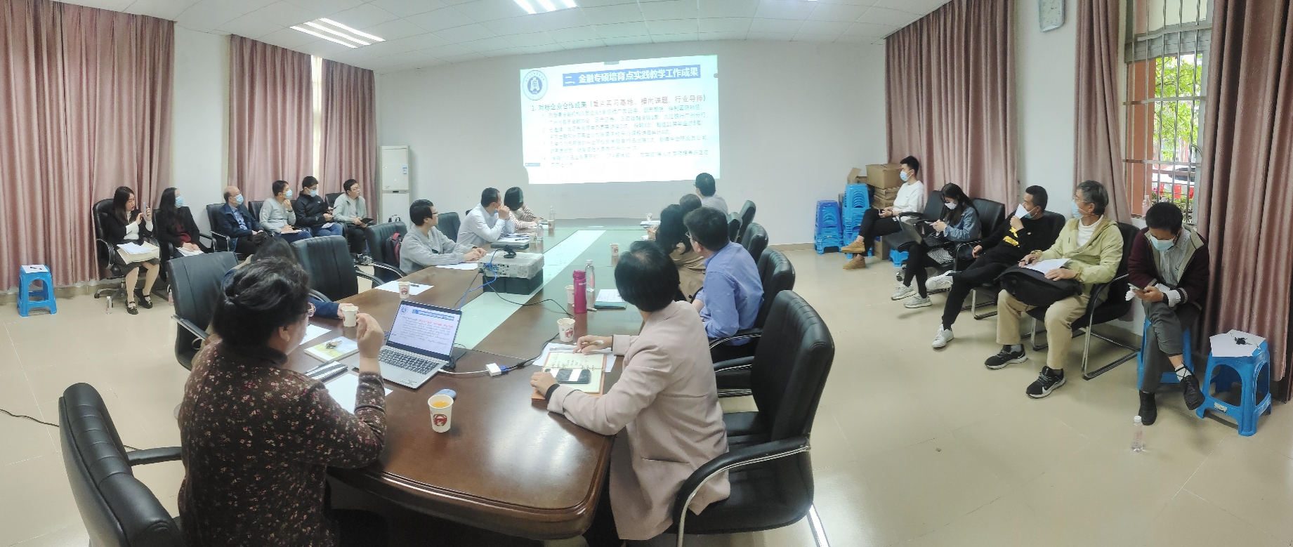 接着,常务副院长史卫发起关于金融专硕培养方向的讨论,全体到会教师从培养应用型人才的角度出发,畅所欲言,头脑风暴现场热烈。讨论过后,金融系主任朱海鹏副教授就金融专硕培育点建设未来两年的六大重点工作进行传达并做任务布置。