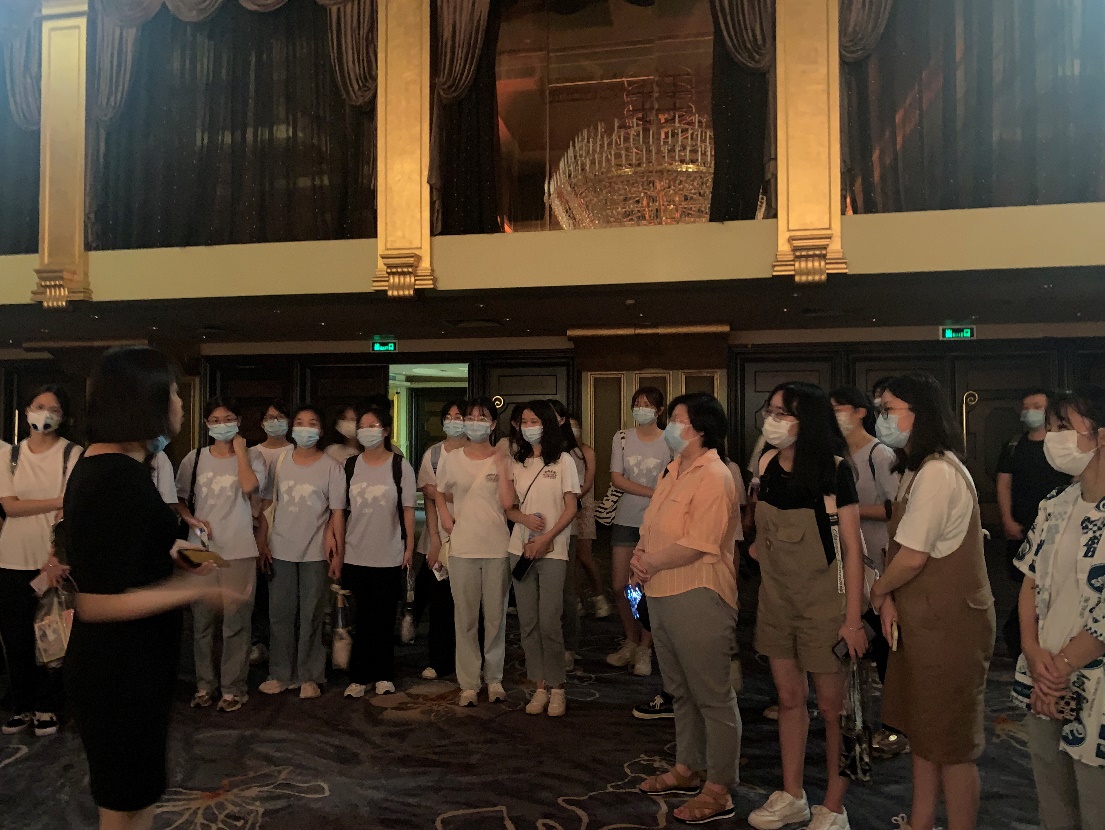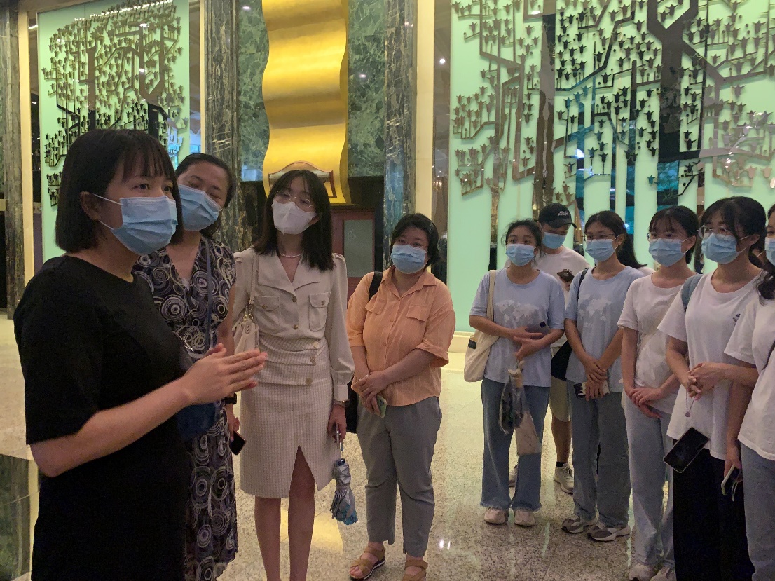 参观完博物馆,旅游管理专业师生们在花园酒店人力资源副总监陈容的带领下参观了酒店。陈总监首先讲解了酒店的基本情况、主要客源、优势特点以及在疫情后进行的一系列改革措施。