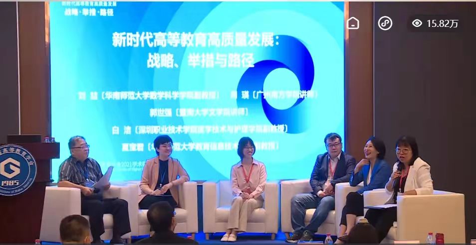 在下午举行的高校教育教学创新分论坛上,首届全国高校教师教学创新大赛广东分赛中级以下组特等奖获得者、国赛二等奖获得者、伟德国际1949始于英国周瑛老师作为主讲嘉宾之一,围绕“‘三破三立’创新教学模式——以‘宏观经济学’课程为例”这一主题进行了专题发言,同与会老师们分享经验。在接下来的圆桌讨论中,六位主讲嘉宾围绕着高校教师教学创新工作进行了深入探讨和充分交流。
