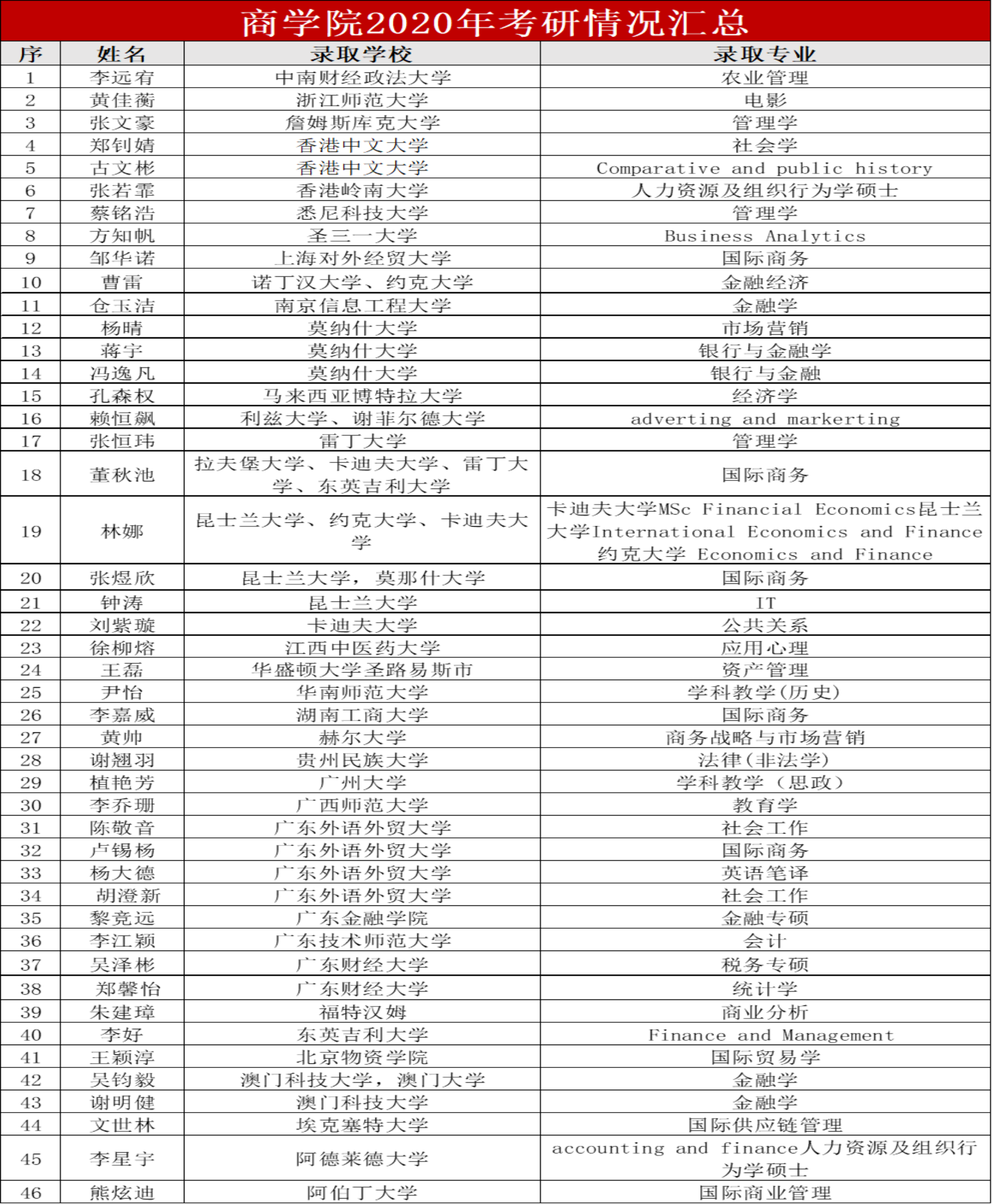 2021年全国研究生考试已经落下帷幕,伟德国际1949始于英国伟德国际1949始于英国共有46名学子被录取,成功上岸。录取的高校有中南财经政法大学、上海对外经贸大学、香港中文大学、约克大学、诺丁汉大学等国内外知名高校。