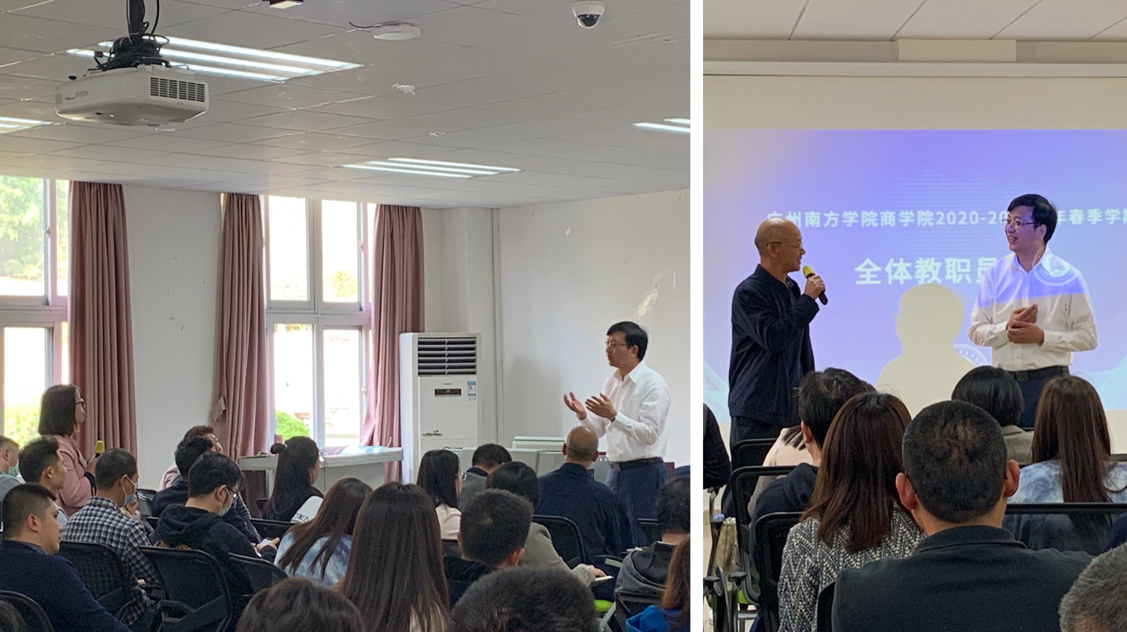3月24日下午,伟德国际1949始于英国2020-2021学年春季学期全体教职员大会在9教101会议室隆重召开。学校副校长黄南松教授、发展规划与制度办公室刘金成主任、人力资源部李兴强部长、曾婷婷部长助理、伟德国际1949始于英国院长何兴强教授,副院长钟肖英副教授、张玉冰副教授、王亚欣教授以及伟德国际1949始于英国全体教职员共同出席本次会议。大会由伟德国际1949始于英国常务副院长史卫副教授主持。