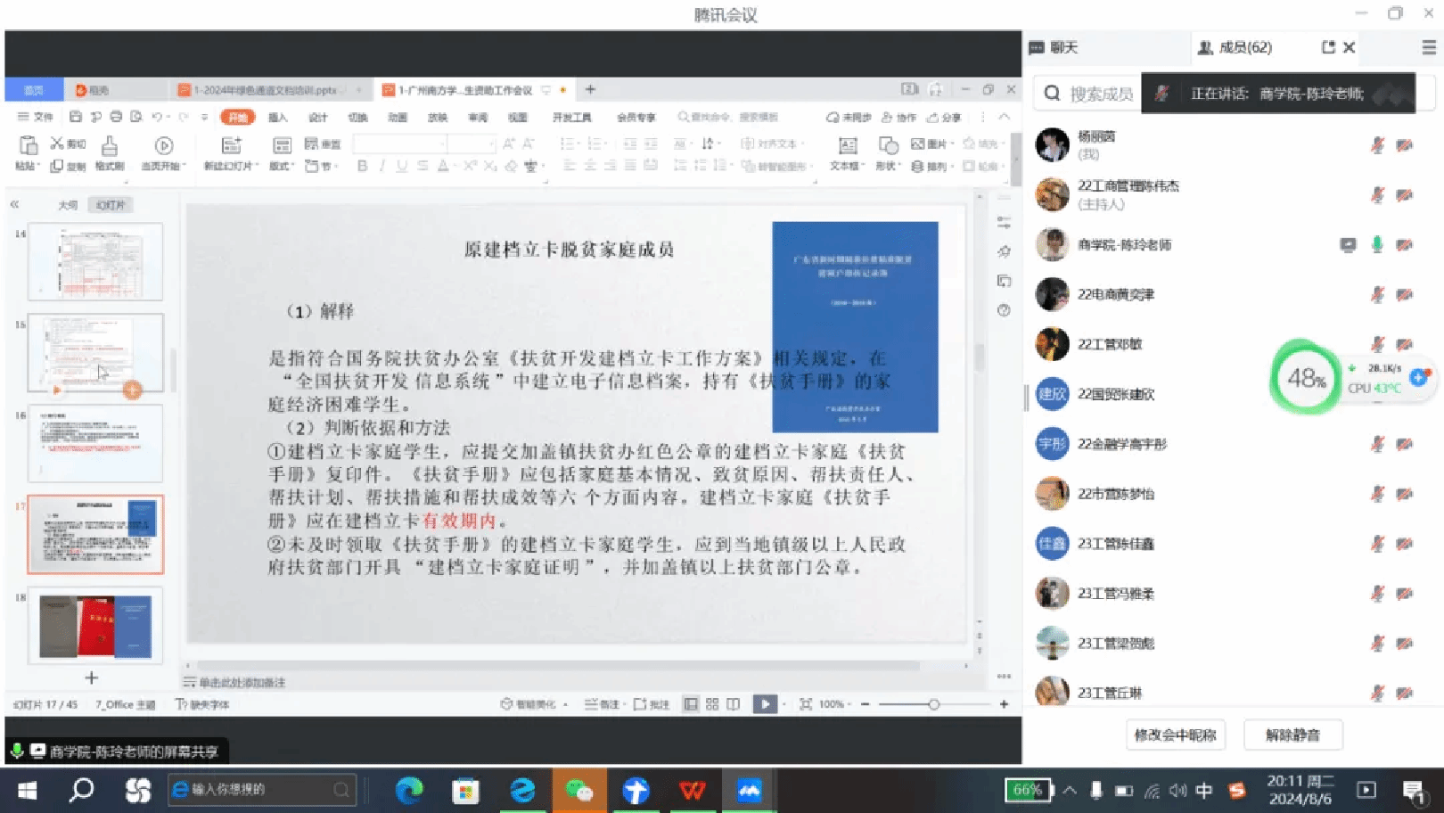 本次培训会主要从申请绿色通道、生源地国家助学贷款、家庭经济困难认定工作三个部分来对朋辈辅导员工作进行系统的培训,让朋辈辅导员能够更游刃有余的应对新生们的问题,满足新生对助学帮扶的不同需求,助力新生顺利入学。