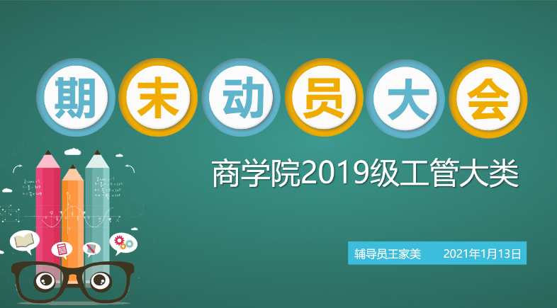 为做好疫情防控工作,同时提高同学们诚信考试的意识,伟德国际1949始于英国2019级工商管理大类于2021年1月13日在10-106召开年级期末动员大会。参会人员有辅导员王家美老师、2019级工商管理大类集体学生。