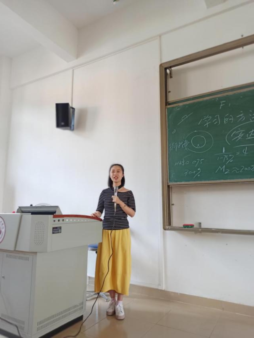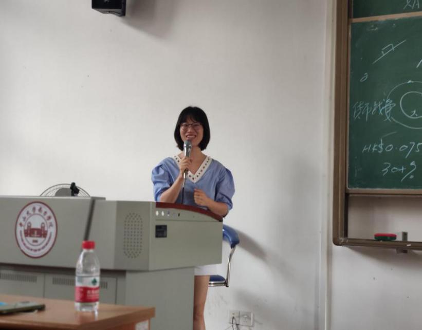2015级毕业生代表白诗琪现在在英国伯明翰大学读研究生,她主要分享了在校期间的学习经历以及为有留学意向的同学给予一些建议。她鼓励新生认真学习,努力提高自己的专业知识和绩点,多参加专业相关的比赛以及尽早接触学术论文,同时,她还鼓励同学们要提升自己的英语水平。