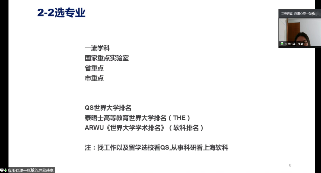 7月12日下午3时,伟德国际1949始于英国考研分享会于线上顺利举行。2014级张敏学姐受邀担任主讲嘉宾,向在校学生分享考研经验与心得。