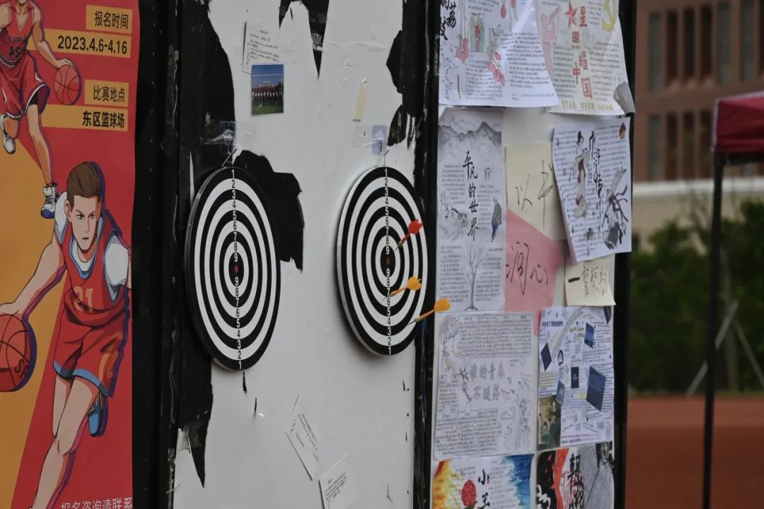 同学们在各个摊位与工作人员们进行互动、挑选自己心仪的商品,支持义卖活动。参与活动的同学们在东操大本营摊位处签到,并在签名板上签上自己的名字,与签名板合照打卡。