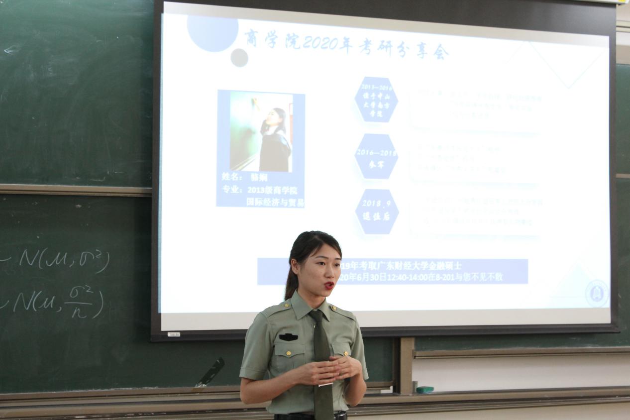 由于在部队待了三年,骆娴学姐统筹集中的复习时间只有三个月。尽管备考时间紧迫、条件严苛,但她依托自己的坚持和毅力,最终考取了广东财经大学金融专业研究生学位。