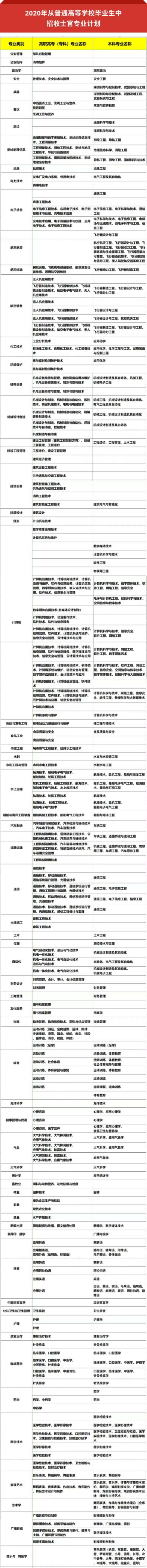 2020年从普通高校毕业生中直接招收士官工作全面展开!根据国防部征兵办公室下发的通知,今年直招士官工作有所调整: