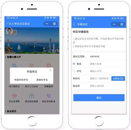 第三步:如果还没绑定生源,请先完成生源绑定,具体操作请参看:《广东大学生就业创业微信小程序 操作流程详解(一)》https://mp.weixin.qq.com/s/vJmDNpg2CJahilT1XPjHag;如果已经完成绑定学籍的同学可以忽略这个步骤。