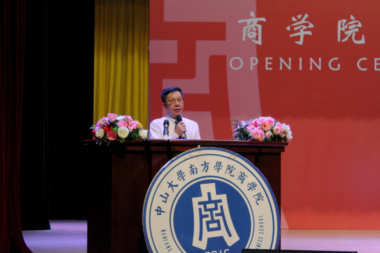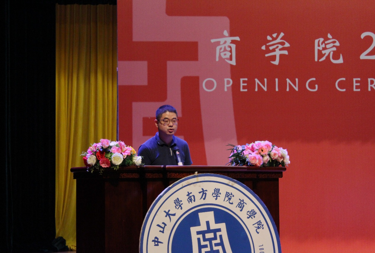 首先中山大学南方学院副校长黄静波教授上台讲话,他表达了对2020级新生的热烈欢迎和期望,以及对中山大学南方学院上水平、冲一流”,建设“中国一流民办大学”的愿景。他还用三句话表达了对同学们的期待,望与同学们共勉。第一句话:责任,聚于心而成于行。希望同学树立对自身,对社会,对国家的责任感。第二句话:以小梦筑大梦,激发无限“正能量”。希望同学们在实现个人梦想的同时,发挥个人应有的社会价值,让自己的青春梦想在社会主义伟大事业的建设中焕发出绚丽的光彩。第三句话:拒绝平庸,勇于“创新”。希望同学们勇于标新立异,打破常规,力争成为引领时代的创新人才!