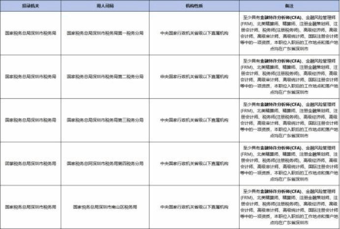*《国际税务总局深圳市税务局补充录用职位简表》
